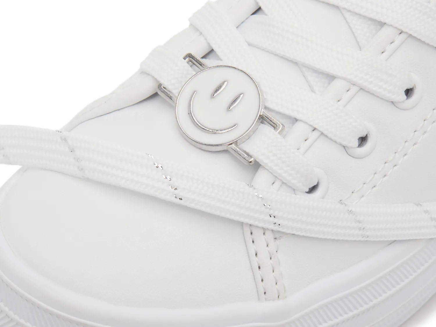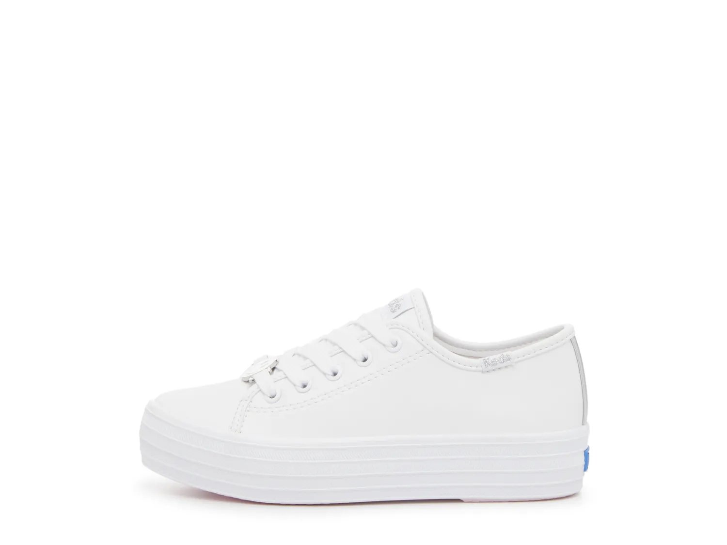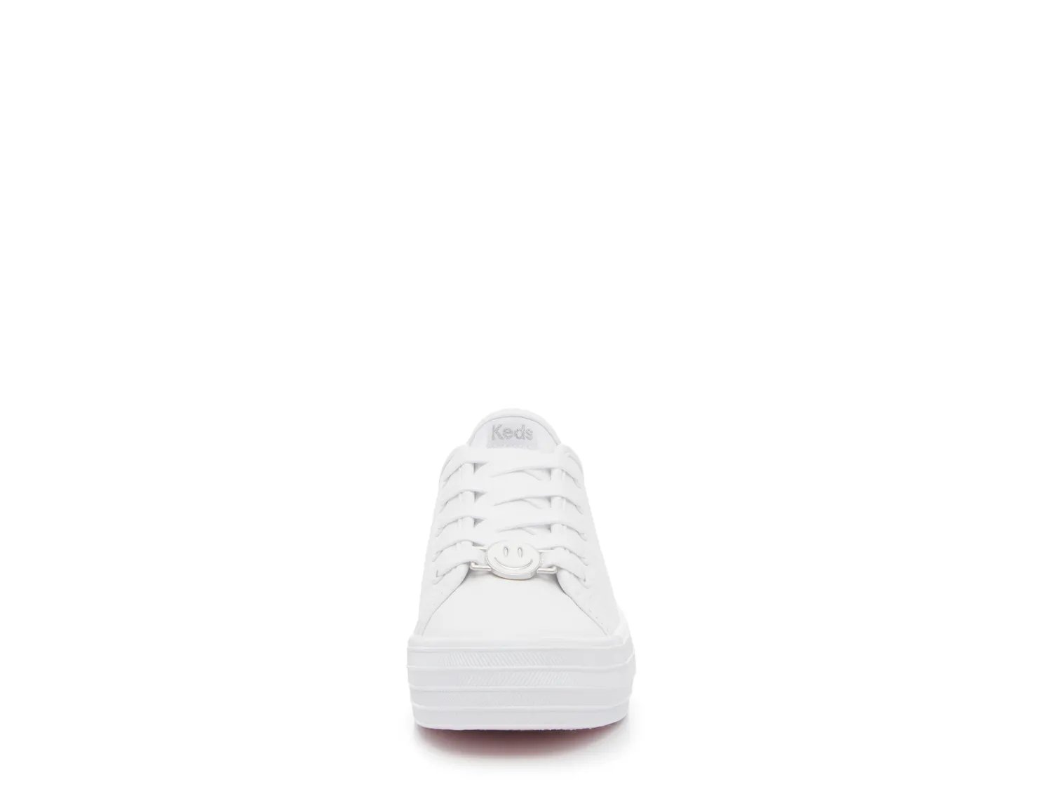 Кроссовки Triple Up Charms на платформе от Keds помогут вашему малышу выглядеть свежо. Они выполнены в монохромном дизайне с подвеской в виде смайлика на шнуровке для дополнительного веселья.