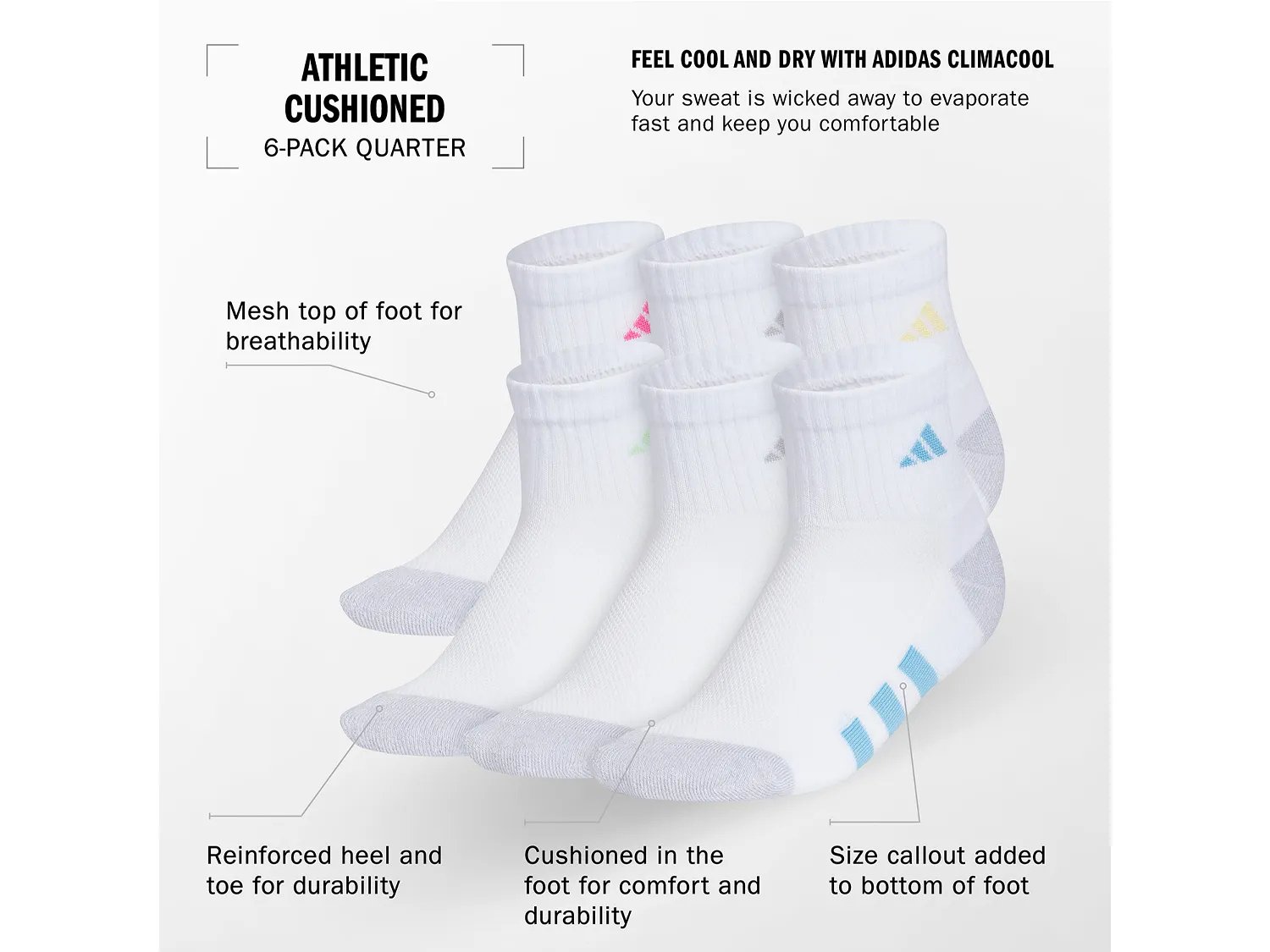 Обеспечите поддержку вашему малышу в спортивных носках с мягкой подкладкой от Adidas. Эта спортивная модель идеально подходит как для активного отдыха, так и для повседневной носки благодаря влагоотводящей конструкции, дышащему материалу и усиленной конструкции.