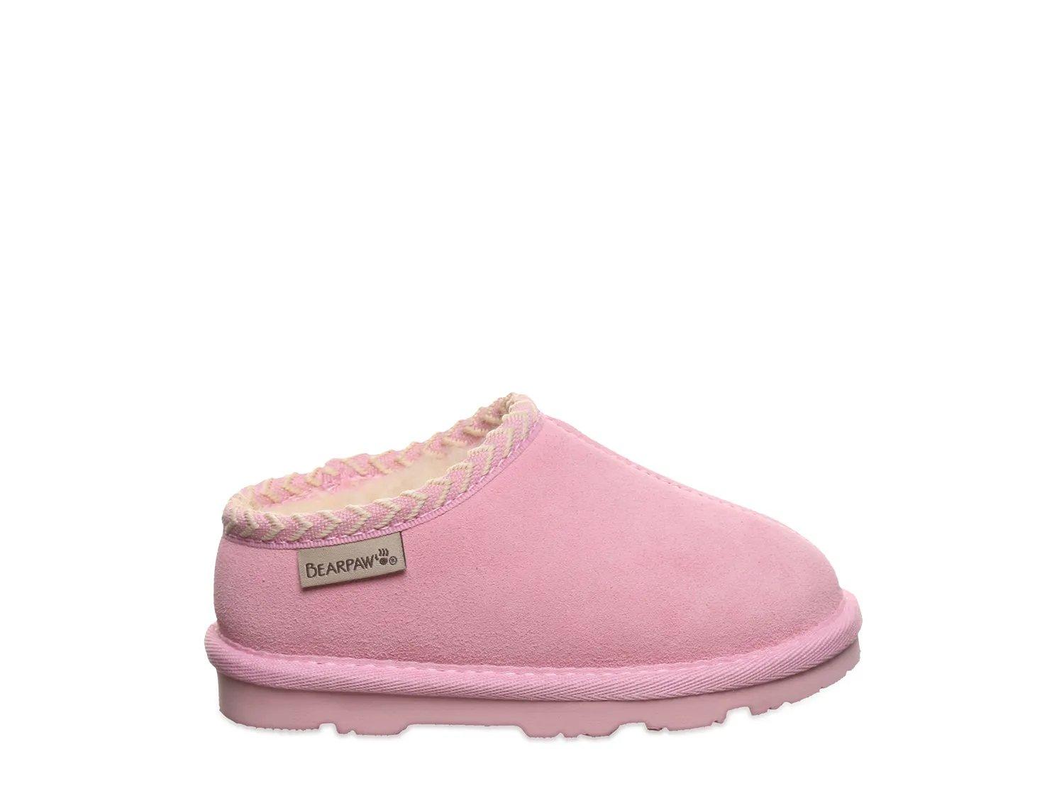 Тапочки Bearpaw Tabitha для малышей с мягким замшевым верхом, защищающим от дождя и пятен, уютной шерстяной подкладкой и мягкой стелькой для комфорта. Легкая подошва и удобная конструкция делают их идеальными для маленьких ножек в движении.