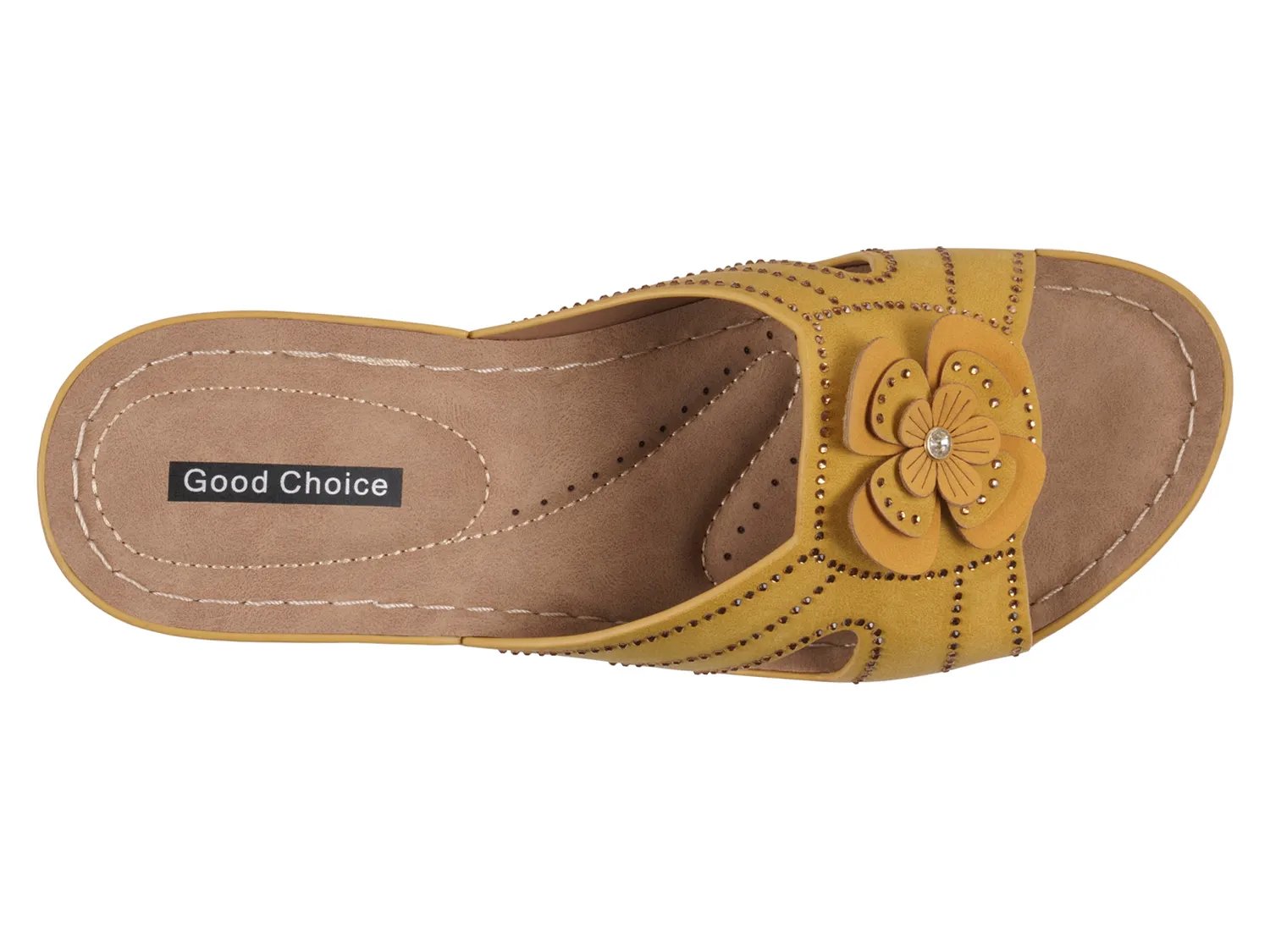 Выйдите на улицу с непринужденным шармом в этих босоножках на танкетке Good Choice Fiora. Изысканные цветочные акценты и изящная отделка заклепками придают этим босоножкам изящность. Мягкая стелька и танкетка средней высоты обеспечивают поддержку в течение всего дня.