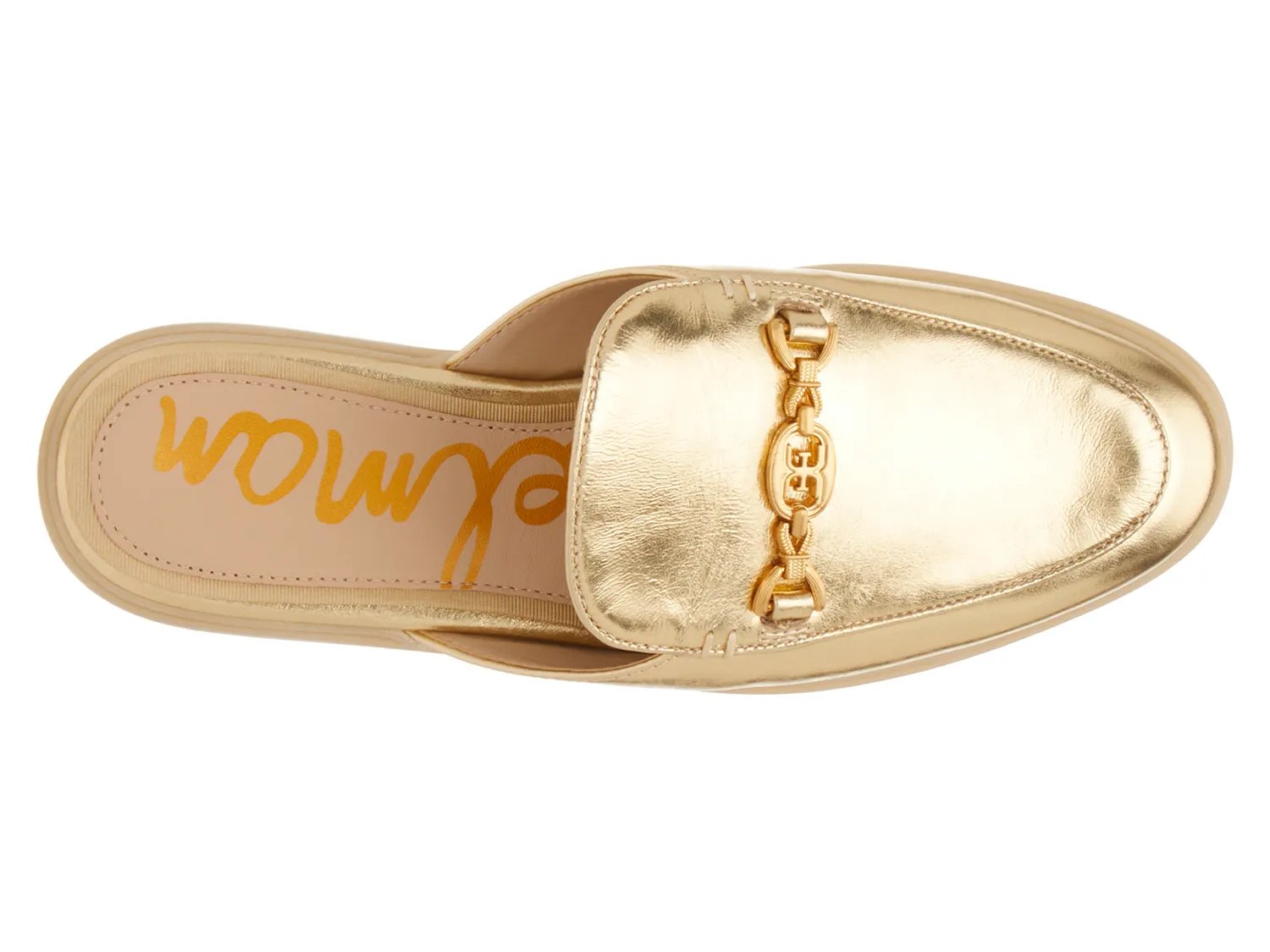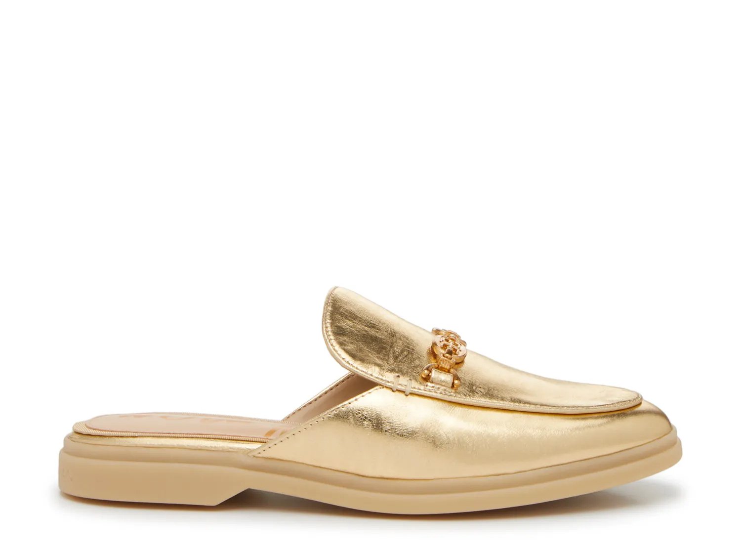 Создайте изысканный образ в мюлях Kira от Sam Edelman. Эта пара, вдохновленная лоферами, отличается продуманными деталями: вырезом по краю, мыском-мок и замысловатым акцентом сверху. Идеально отполированные туфли с эффектным металлическим оттенком.
