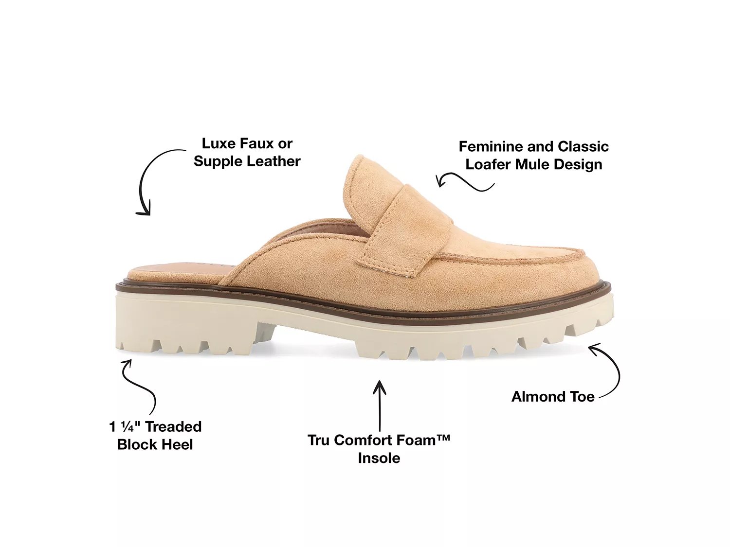 Мюли Miycah из коллекции Journee заслуживают комплиментов, куда бы вы ни отправились. Мюли-лоферы с современным миндалевидным носком обеспечивают идеальный подъем благодаря массивному каблуку и изящной платформе. Стелька из пеноматериала Tru Comfort обеспечит комфорт на весь день.