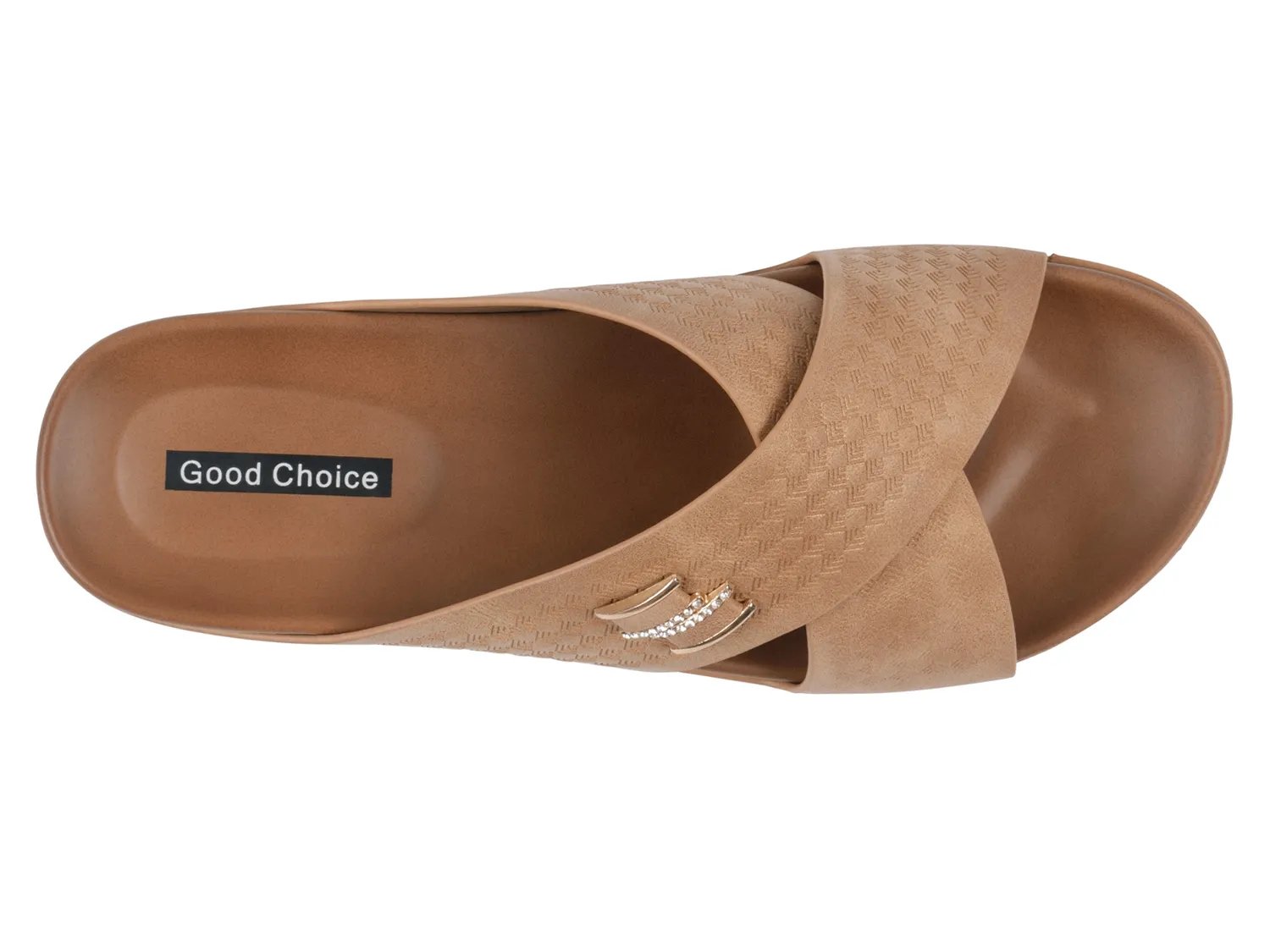 Украсьте свой повседневный образ этими элегантными босоножками Good Choice Carter на танкетке. Эти босоножки без застежек, украшенные гладкими перекрещивающимися ремешками и изящной текстурой, дополнены металлическим акцентом, который добавляет им нужное количество блеска. Мягкая стелька обеспечивает комфорт в течение всего дня.
