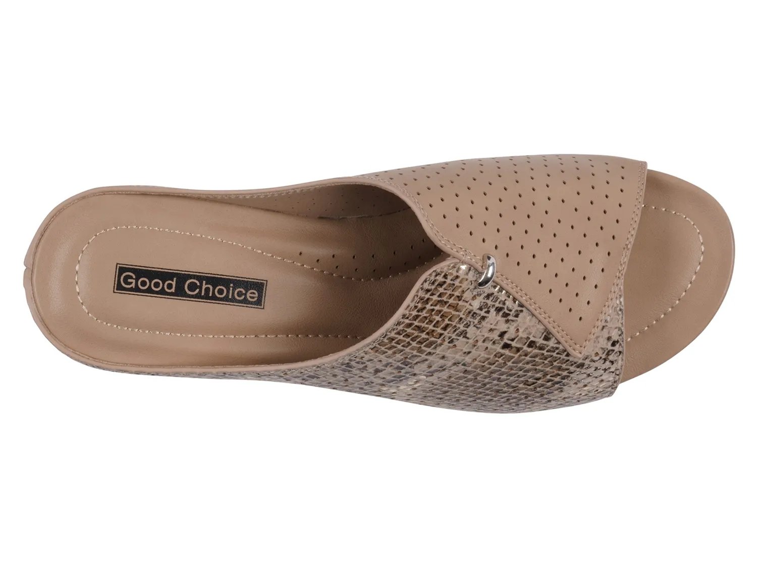 Излучайте современную изысканность с этими босоножками Good Choice Dacia на танкетке. Текстурированный верх с гладкой перфорированной накладкой обеспечивает визуальную глубину и дышащую легкость. Изящный металлический акцент придает сдержанный шик, а мягкая стелька обеспечивает длительный комфорт.