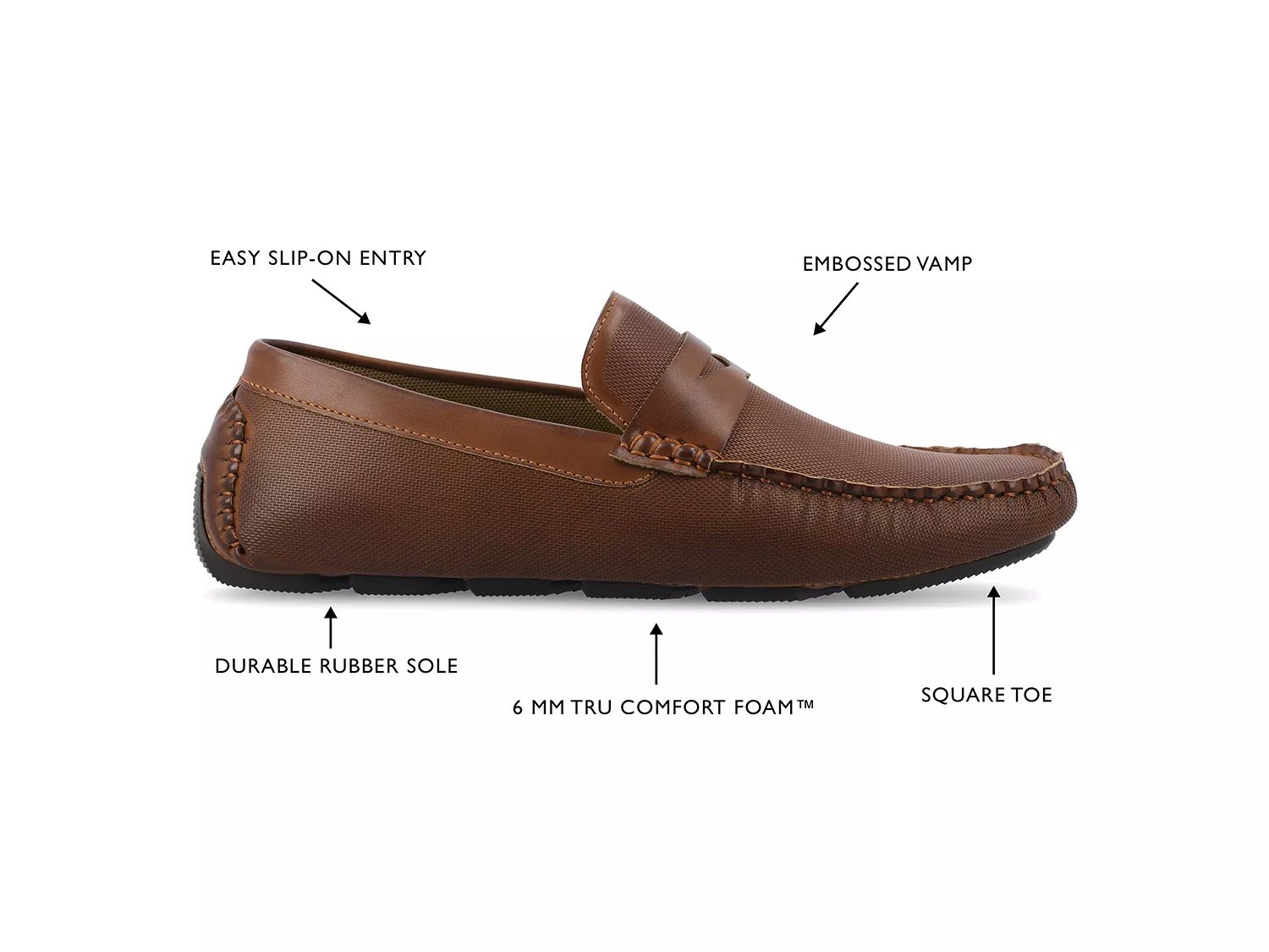 Ощутите непринужденный стиль с лоферами Isaiah от Vance Co. Эти туфли без шнуровки выполнены из веганского синтетического материала для экологичного прикосновения и оснащены стелькой Tru Comfort Foam для поддержки и амортизации в течение всего дня. Прочная резиновая подошва завершает образ.