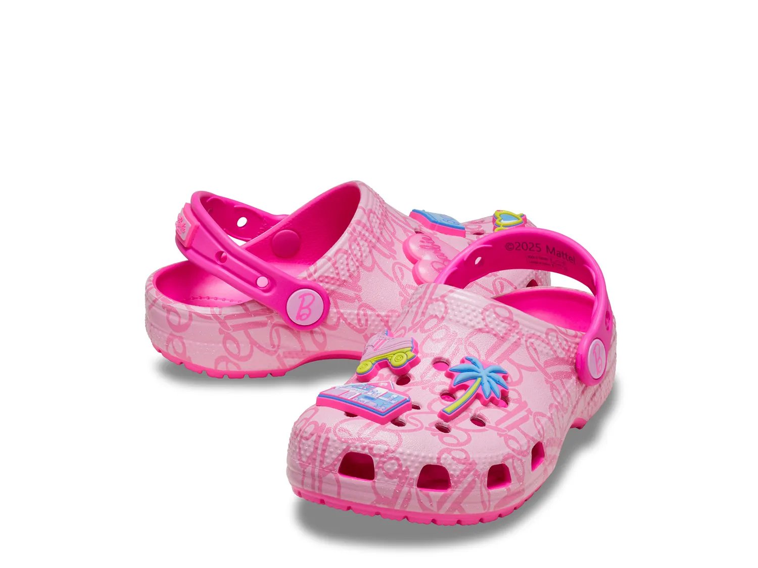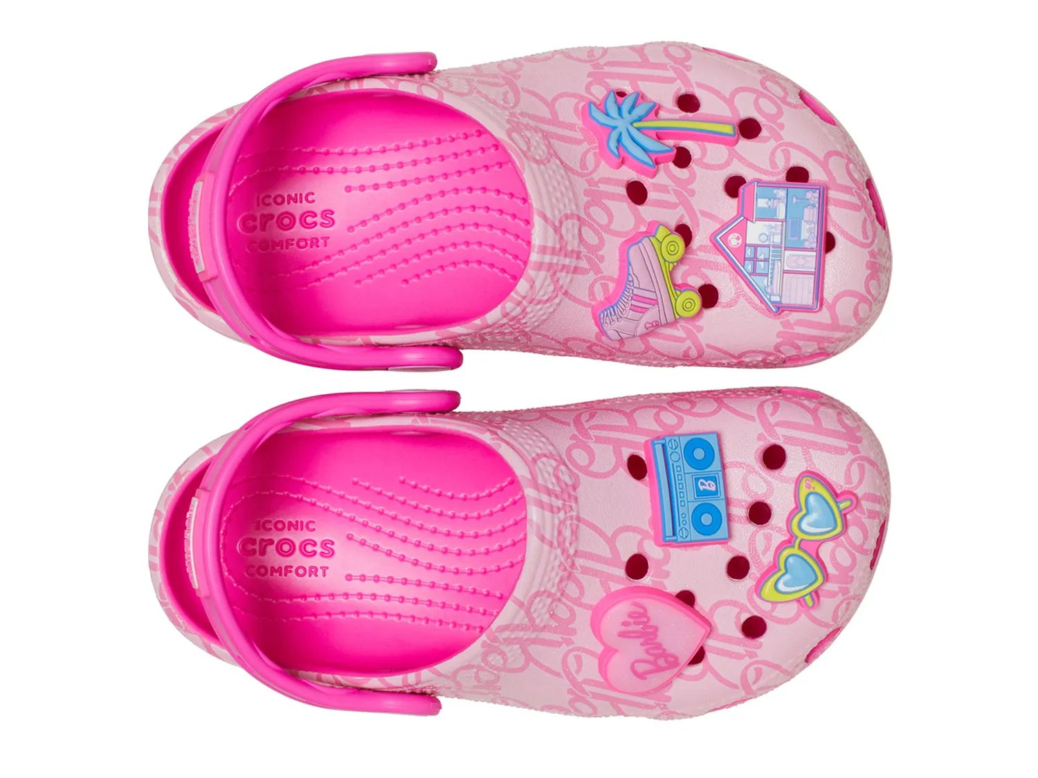Добавьте ярких красок в образ вашего малыша с помощью классических сабо Barbie от Crocs. Элегантный монограммный принт и шесть несъемных подвесок Jibbitz, включая роликовый конек Dreamhouse и солнцезащитный козырек в форме сердца, придают каждому шагу легендарный блеск. Кроме того, сабо легкие, водонепроницаемые и быстросохнущие.