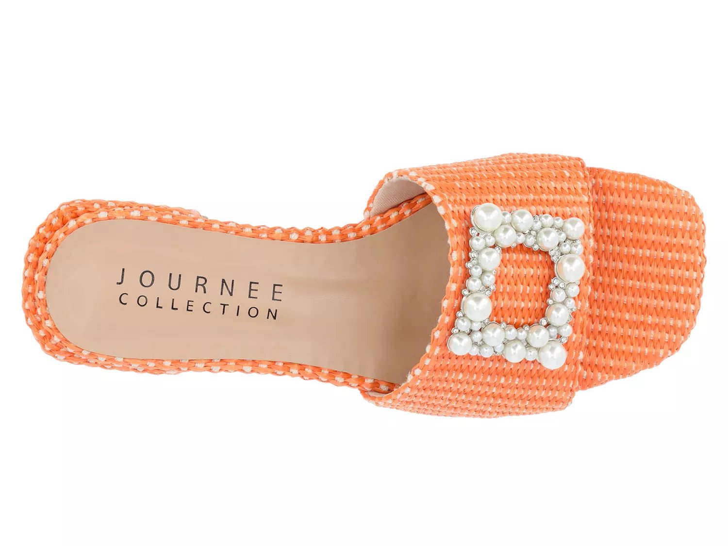 Создайте подиумный образ для теплой погоды с босоножками Justina из коллекции Journee. Эти шлепанцы с квадратным носком, будь то гибкая рафия по всей поверхности или эффектные жемчужные акценты, не останутся незамеченными. Стелька из пеноматериала Tru Comfort обеспечит вам комфорт на весь день.