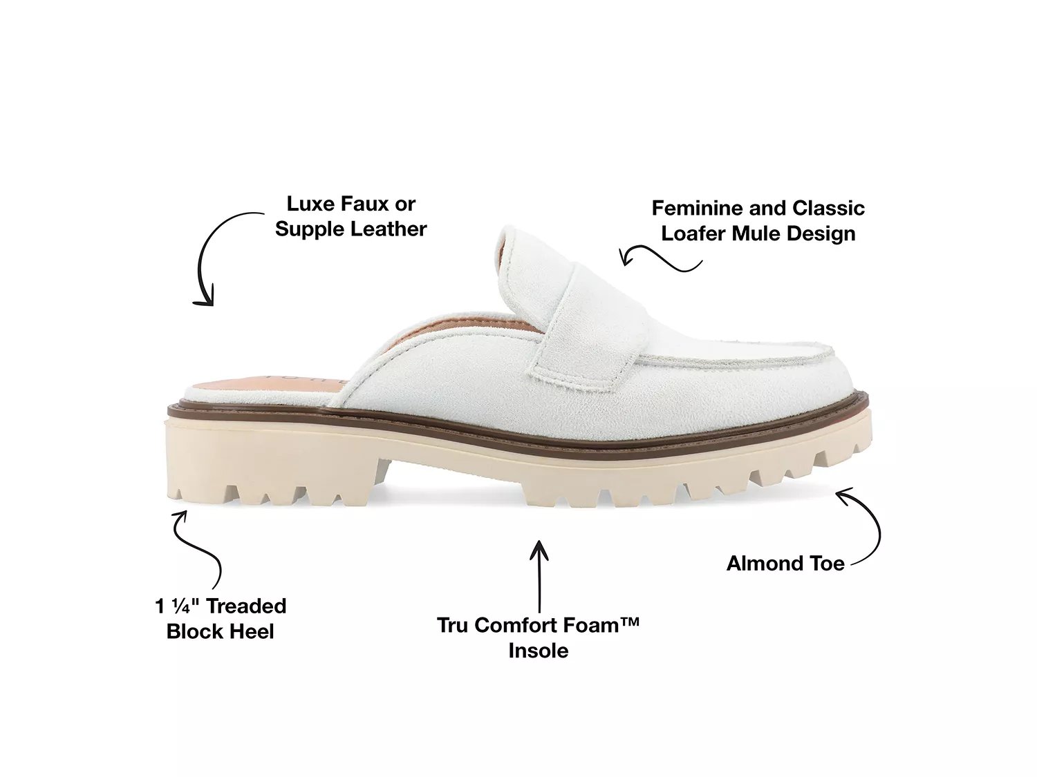 Мюли Miycah из коллекции Journee заслуживают комплиментов, куда бы вы ни отправились. Мюли-лоферы с современным миндалевидным носком обеспечивают идеальный подъем благодаря массивному каблуку и изящной платформе. Стелька из пеноматериала Tru Comfort обеспечит комфорт на весь день.