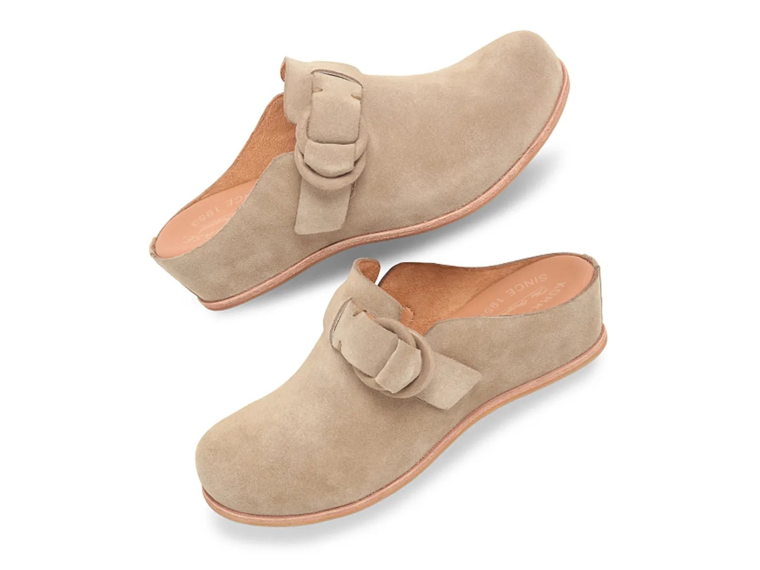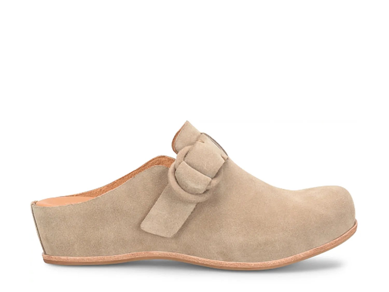 Окунитесь в непреходящую красоту с сабо Kori от Kork-Ease. Эти кожаные туфли имеют скрытый каблук-танкетку для придания ноге высоты и мягкую стельку с дополнительным пеноматериалом для комфорта в течение всего дня.