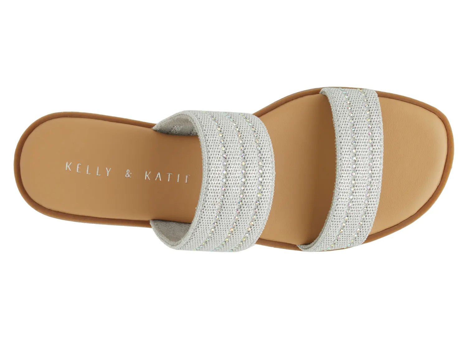 Станьте блистательной моделью с босоножками Cona от Kelly & Katie. Эти непринужденные шлепанцы с двойным ремешком украшены стразами по всей длине.