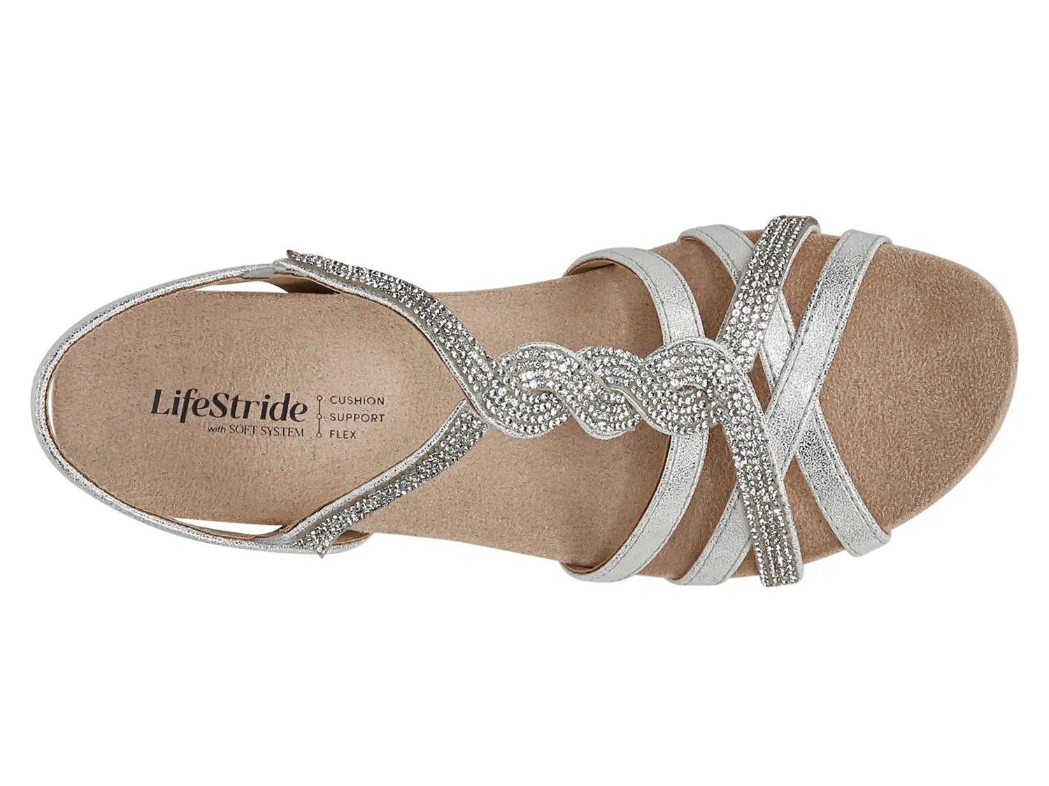 Оживите вечер с сандалиями LifeStride Miami. Эта модель на танкетке украшена стразами, которые отражают свет, а технология Soft System обеспечивает поддержку стопы.