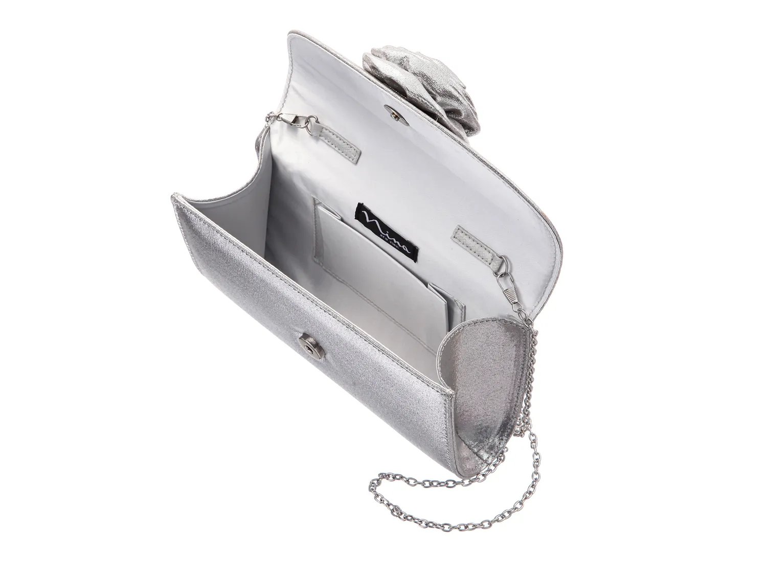 Продемонстрируйте свой шикарный стиль с клатчем Frily от Nina. Эта компактная сумочка украшена причудливой цветочной аппликацией и съемным плечевым ремнем-цепочкой, поэтому ее можно носить как кроссбоди!