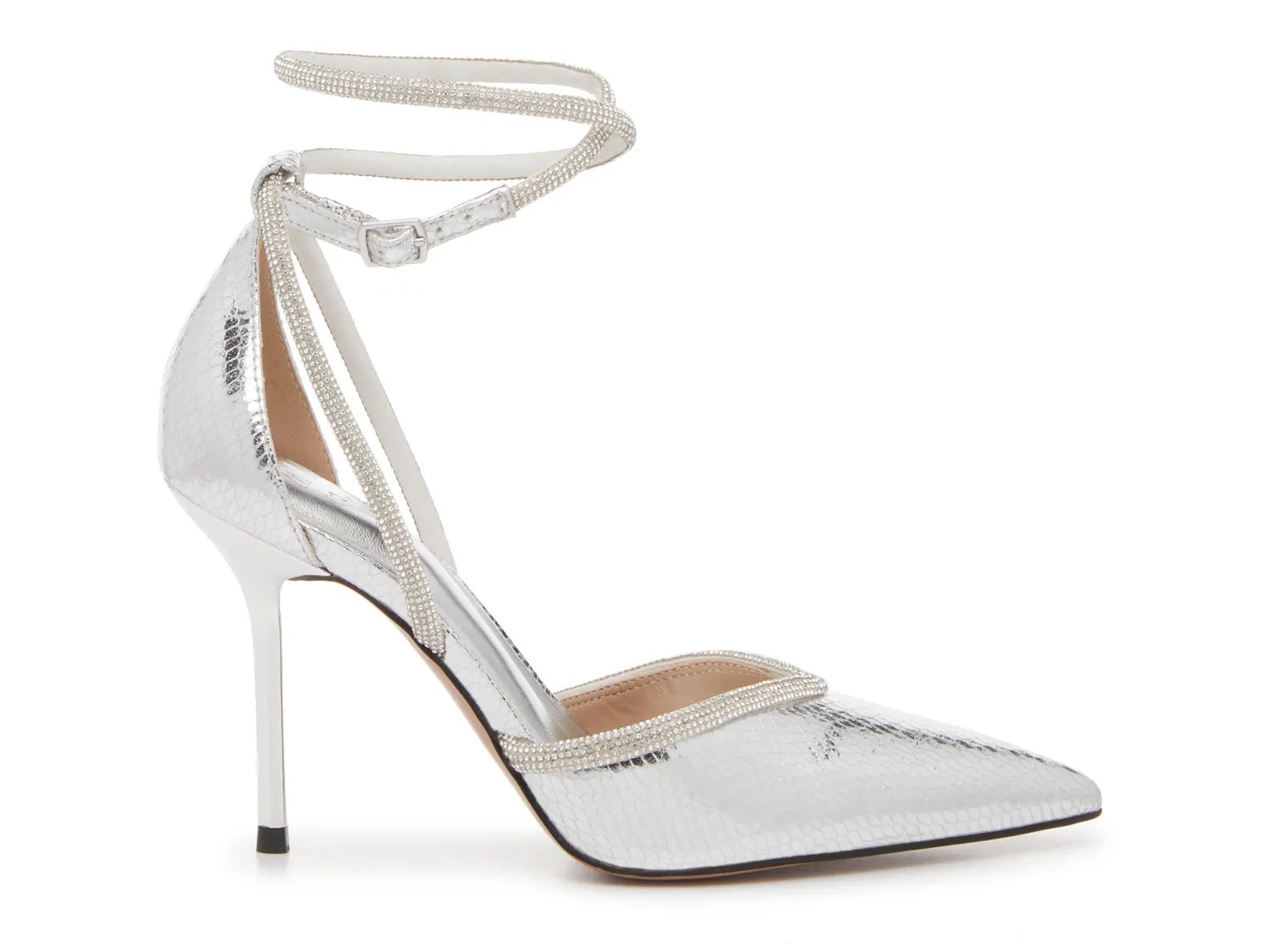 В туфлях-лодочках Kaine от Mix No. 6 вы будете приковывать взгляды со всех сторон. Эта пара отличается высоким узким каблуком, сверкающими стразами на ремешке вокруг щиколотки и вырезом в форме сердечка, создающим эффектный образ.