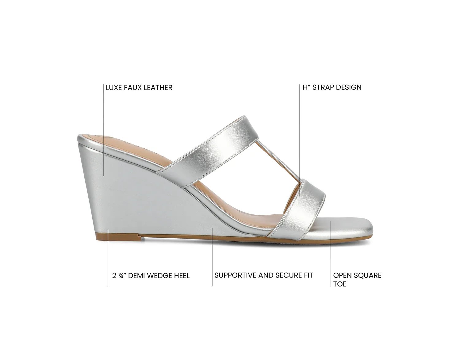 Дополните официальный образ с легкостью с помощью босоножек Journee Clodie. Изящная танкетка создаст настроение, а классический H-образный ремешок обеспечит универсальный стиль для любого случая.