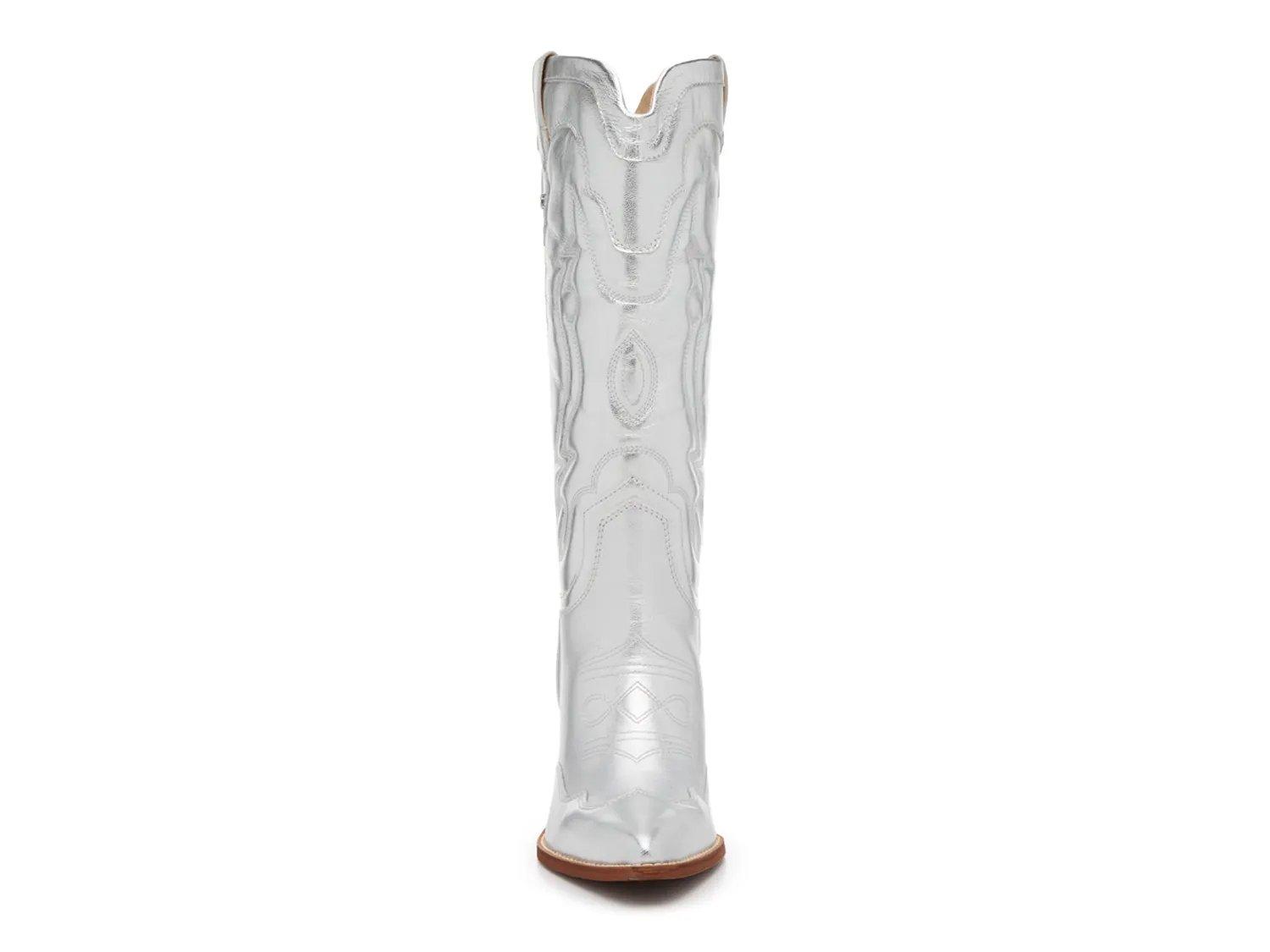 Дополните свой деревенский стиль модными ковбойскими сапогами James от Sam Edelman. Элегантный силуэт дополнен металлическим оттенком, изысканной строчкой и наборным каблуком.