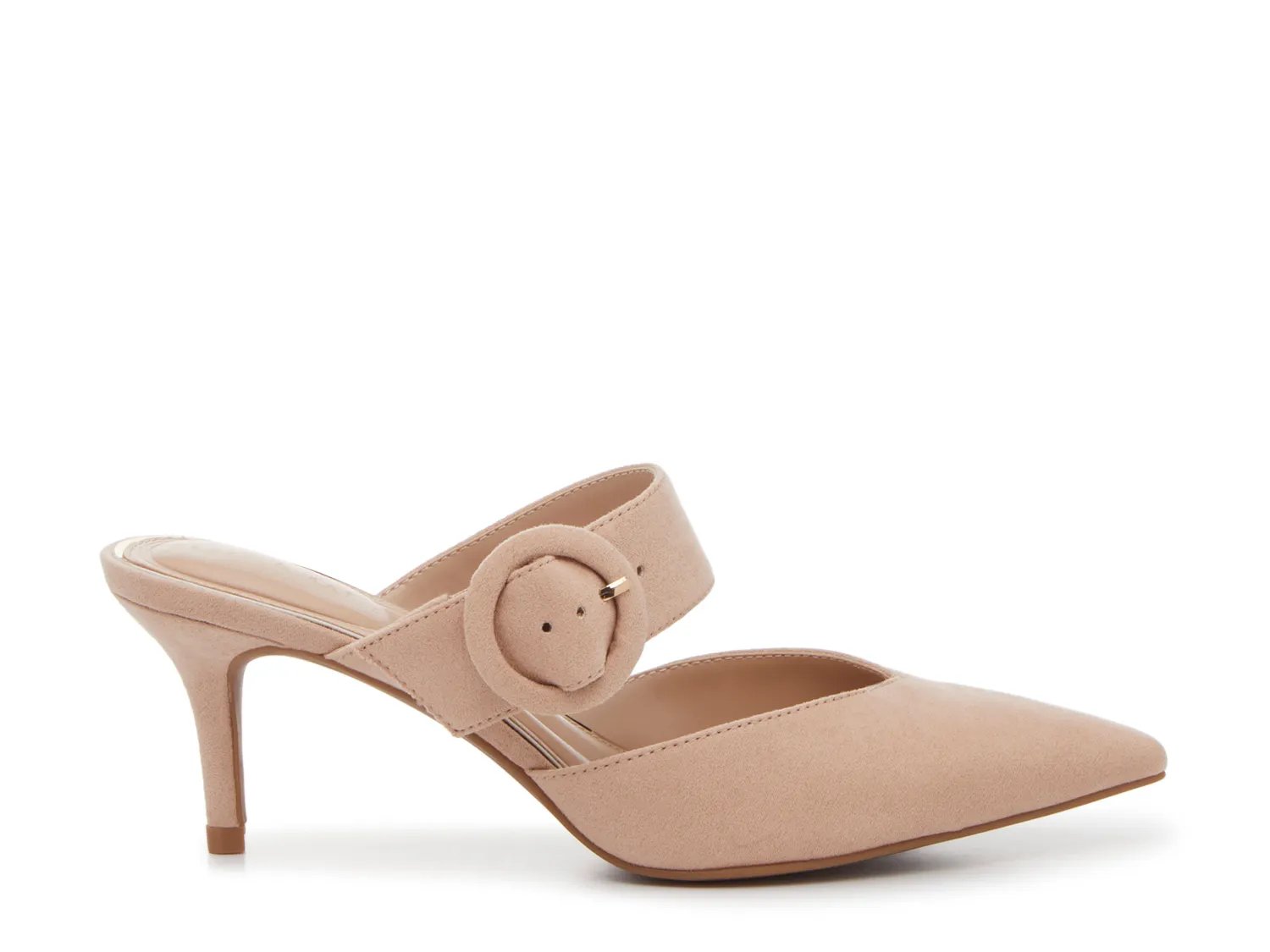 Добавьте элегантности вашему официальному образу с помощью мюлей Kelly & Katie Raone. Круглая пряжка дополняет острый носок и линию верха в форме сердца, создавая эффектный акцент.