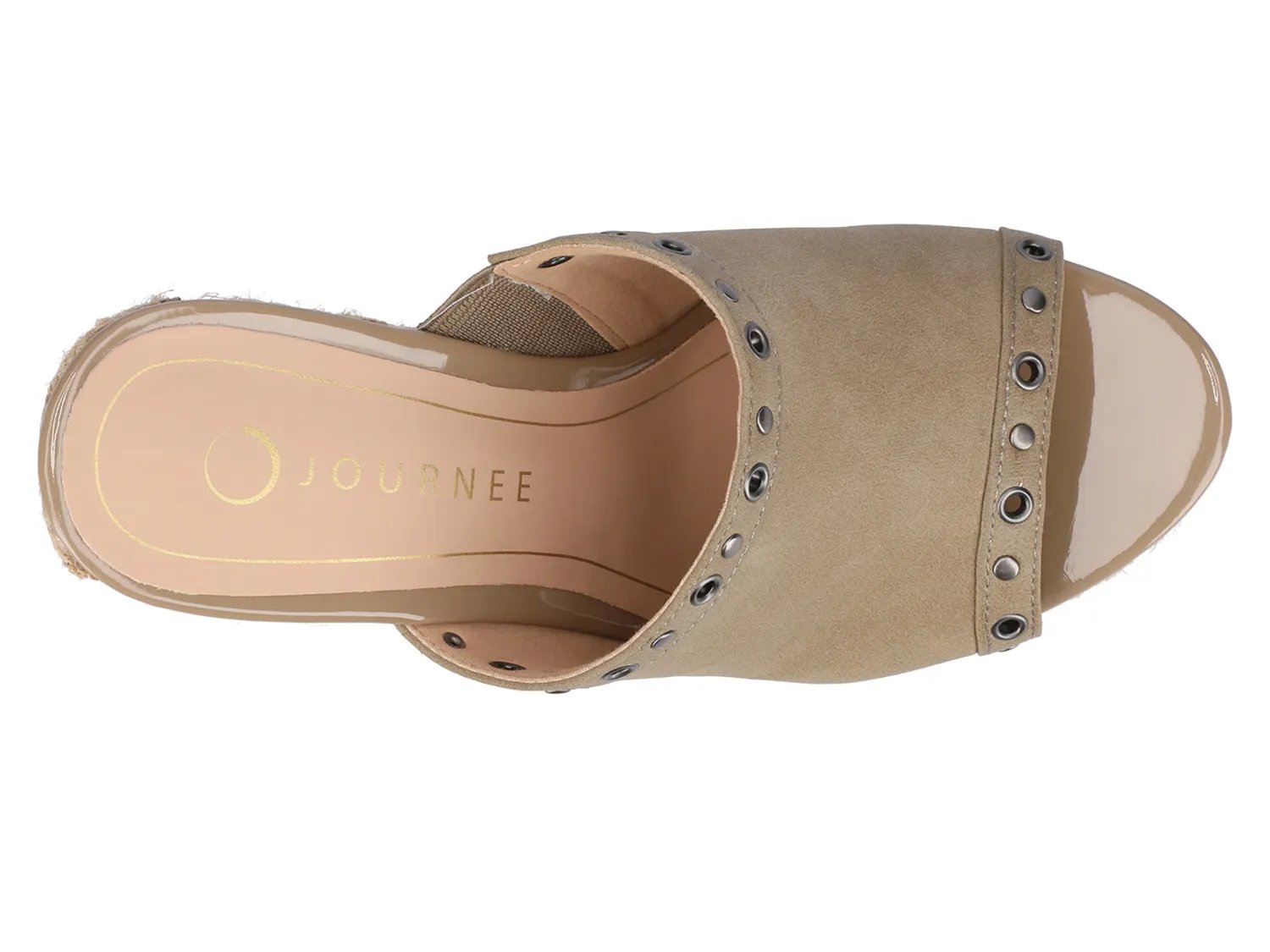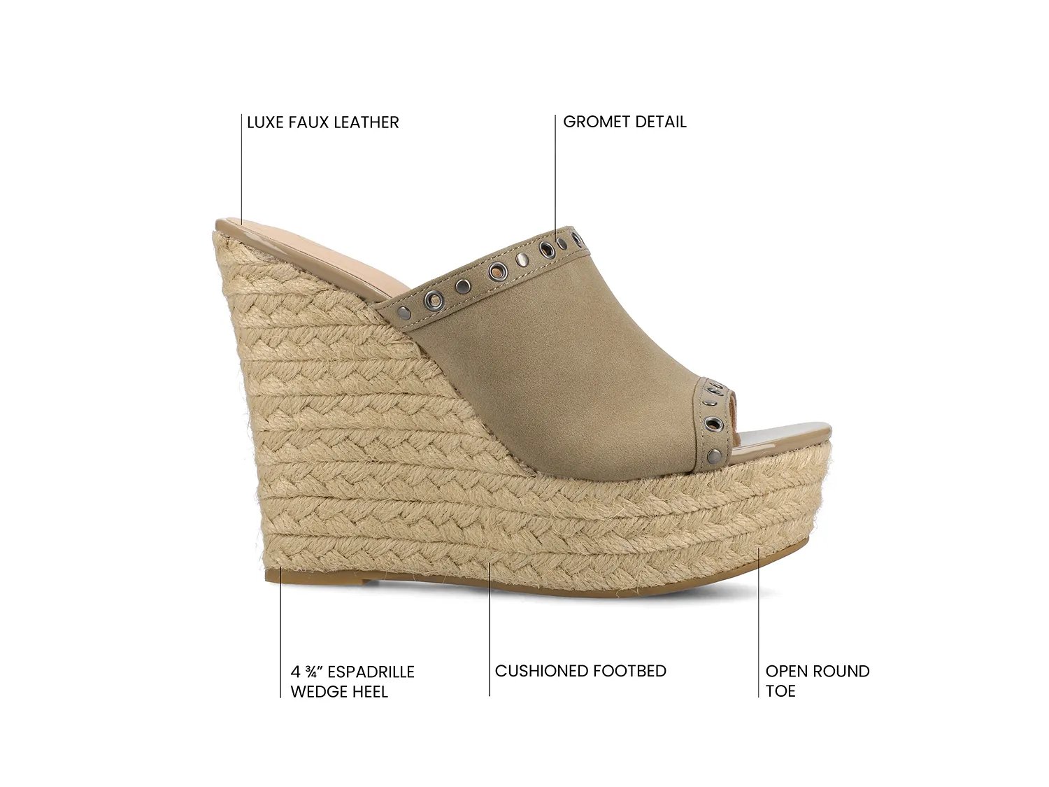Усовершенствованная версия летнего базового предмета гардероба, босоножки на танкетке Yari, станет стильным дополнением к вашей коллекции. Эта модель от Journee отличается плетеным эспадрильем, высоким каблуком и эффектными люверсами по краю.