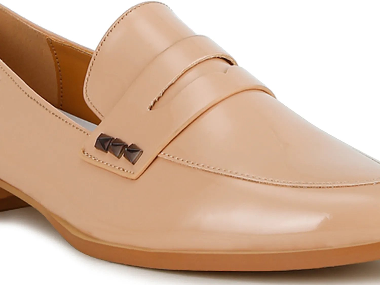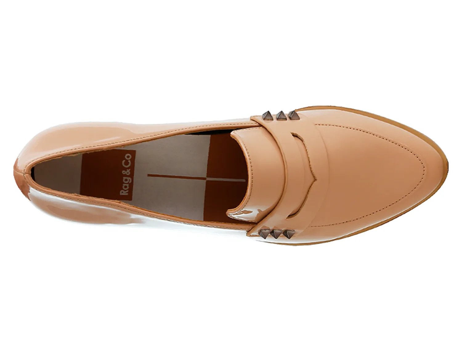 Классические пенни-лоферы получили современное обновление в модели Winged от Rag & Co. Эти сшитые на заказ туфли без застежек украшены заклепками на декоративном ремешке для пенни-кипера, имеют гладкую лакированную отделку и низкий наборный каблук.
