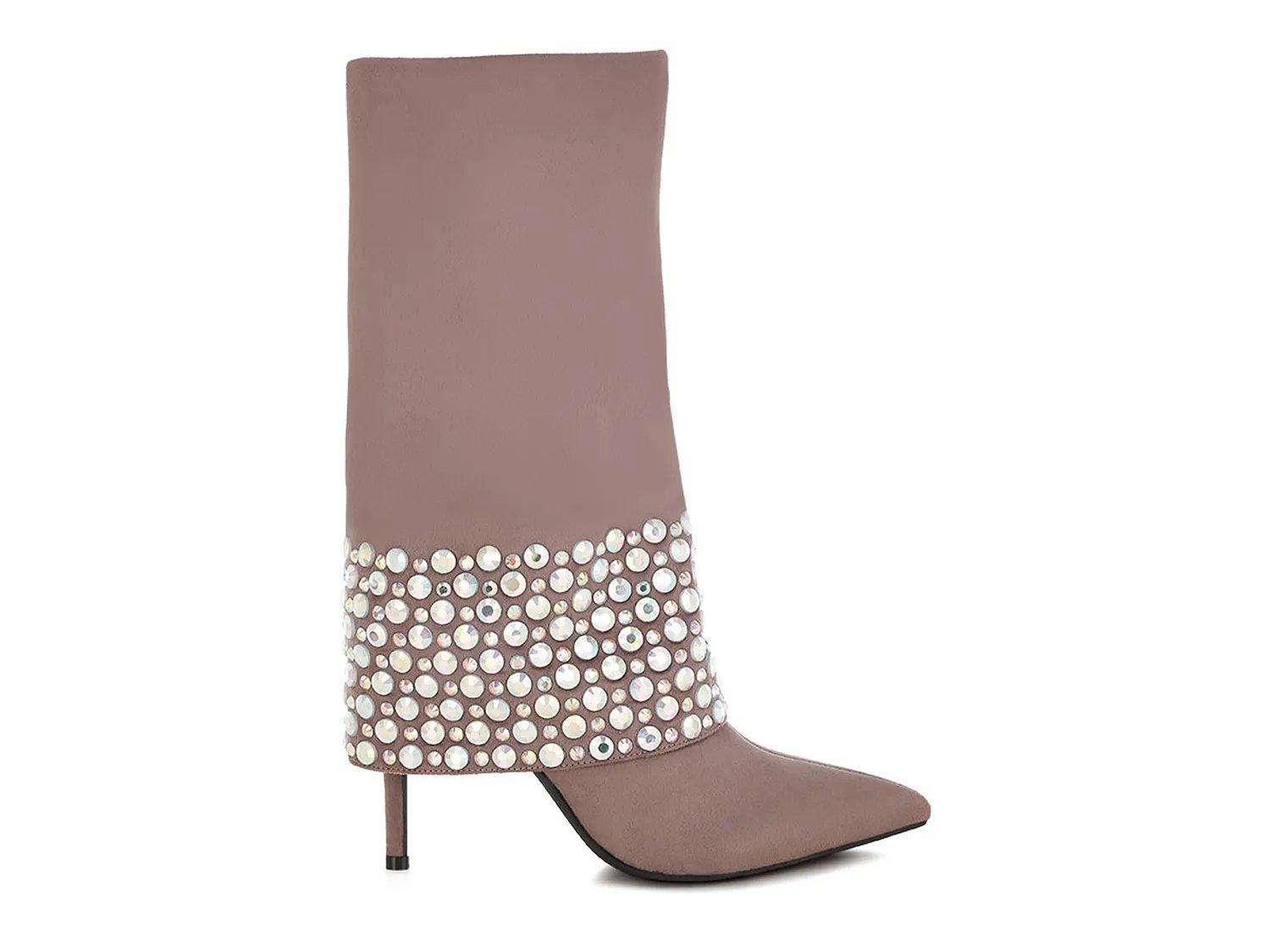 Покажите свой модный образ с ботинками Basso от London Rag. Стильное отворотное голенище, украшенное сверкающими стразами и стразами, добавляет нотку гламура этим ботинкам на молнии. Наслаждайтесь комфортом в течение всего дня благодаря мягкой стельке из пены с эффектом памяти, дышащей подкладке и эргономичной конструкции. Острый носок и изящный каблук-шпилька создают стильный, удлиняющий силуэт.