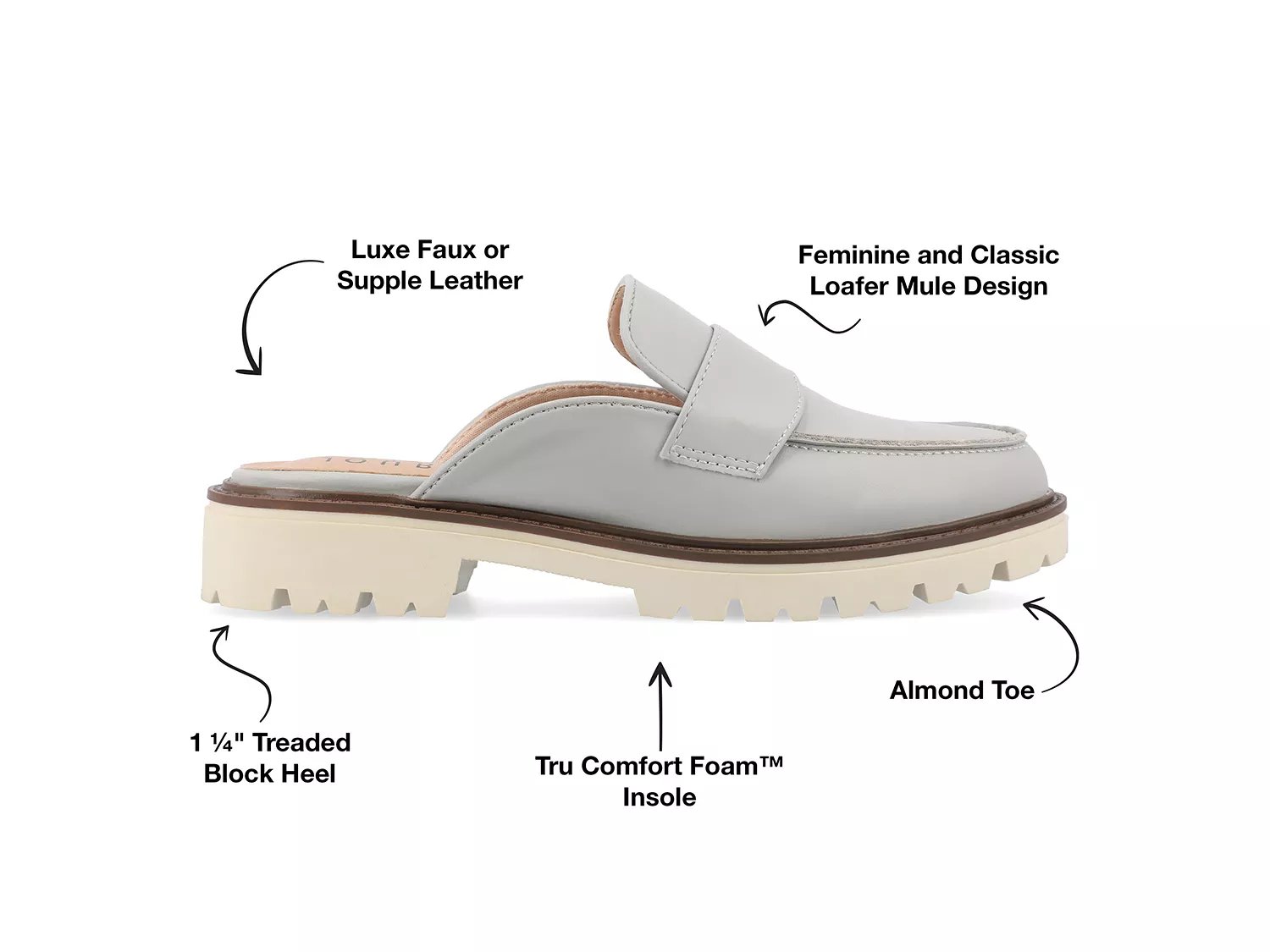 Мюли Miycah из коллекции Journee заслуживают комплиментов, куда бы вы ни отправились. Мюли-лоферы с современным миндалевидным носком обеспечивают идеальный подъем благодаря массивному каблуку и изящной платформе. Стелька из пеноматериала Tru Comfort обеспечит комфорт на весь день.