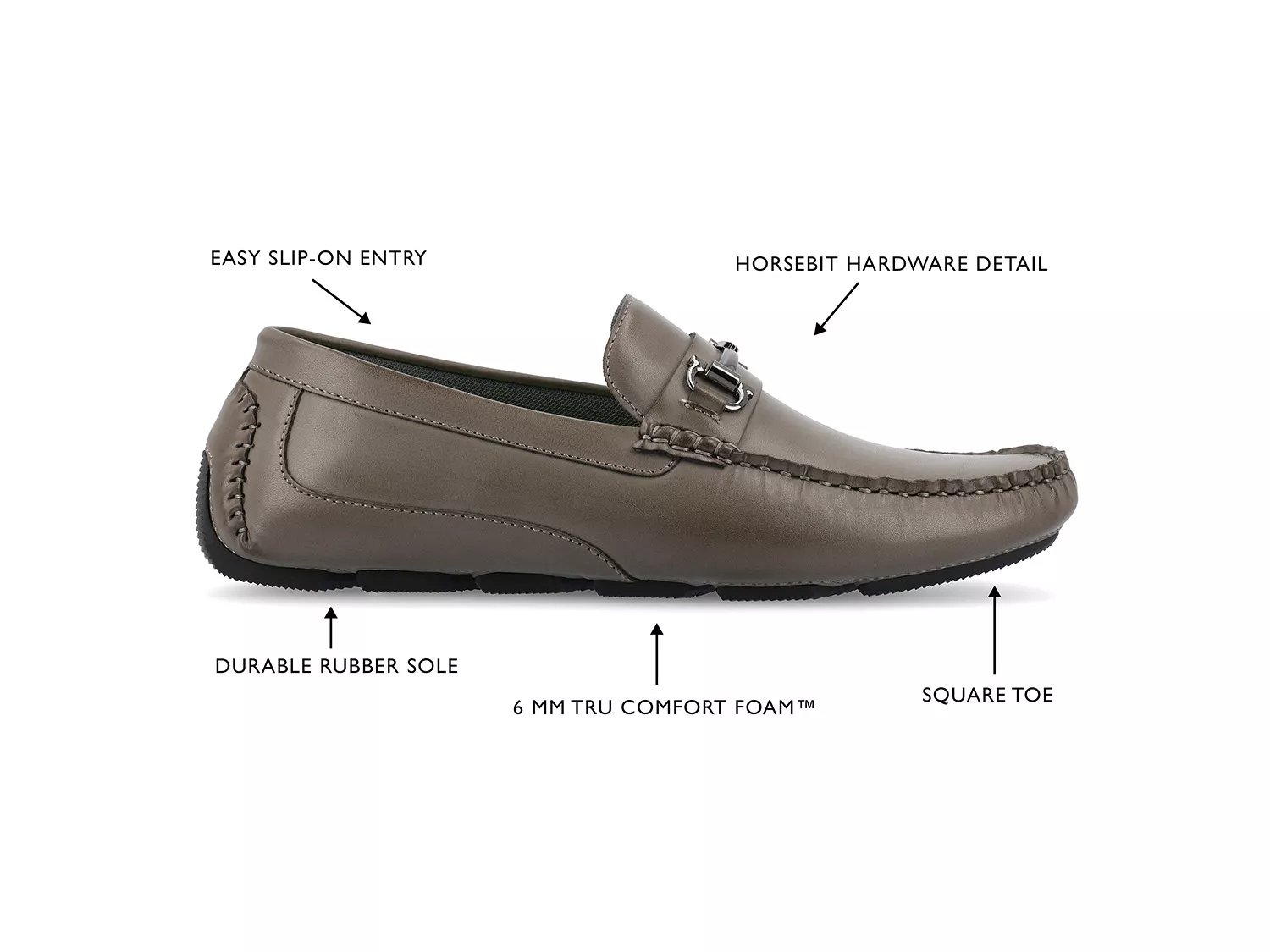 Создайте стильный и уверенный образ в этих лоферах Holden от Vance Co. Эти туфли-слипоны изготовлены из веганской искусственной кожи, прочны и украшены фурнитурой Horse Hard. Стелька Tru Comfort Foam и сетчатая подкладка обеспечивают необходимый комфорт, а прочная резиновая подошва - надежное сцепление.