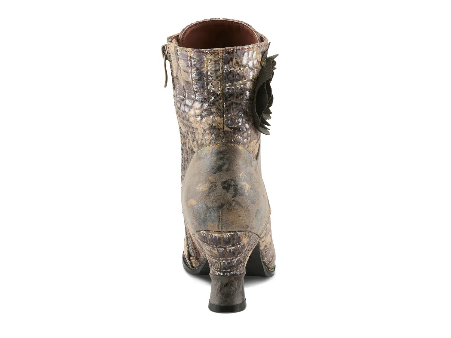 Разнообразьте свой повседневный стиль, надев ботильоны Prelia от L'Artiste! Верх с узором, пэчворк, веселые цветочные узоры и змеиный принт создают модный образ. Стильный носок-клеш и декоративная розетка идеально дополняют стильный образ.