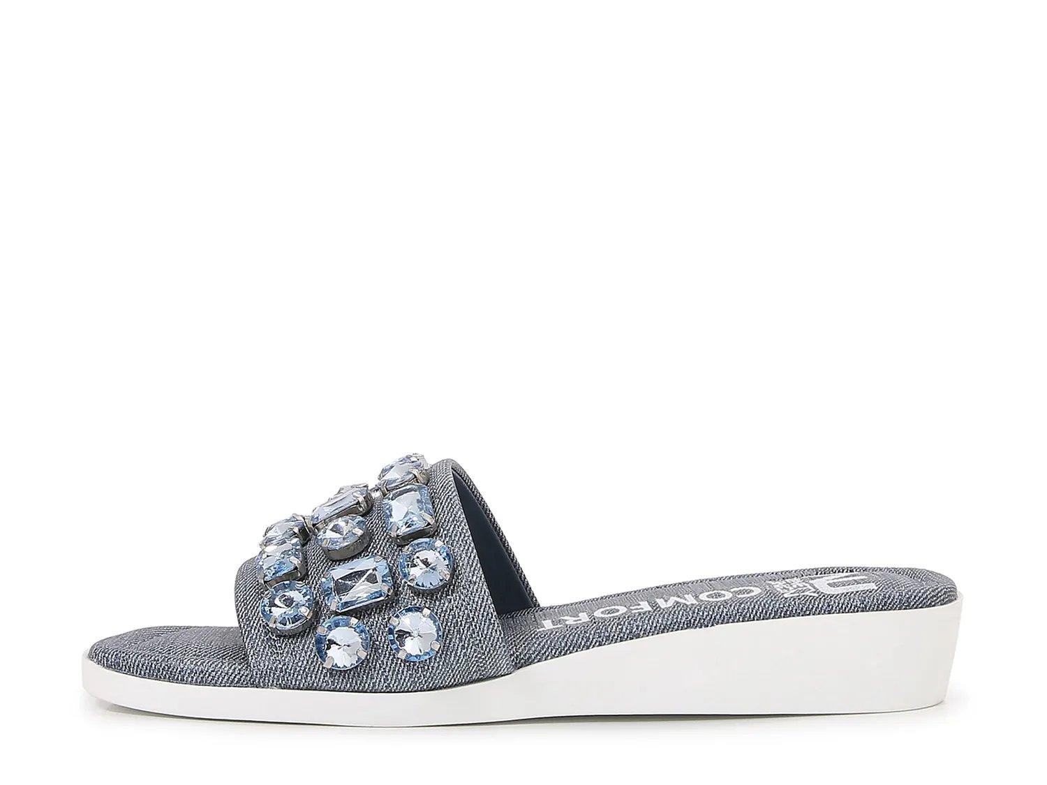Добавьте немного гламура к простому силуэту с босоножками на танкетке Seaside от Ninety Union. Эти простые шлепанцы украшены стразами вдоль ремешка, имеют квадратный носок и сплошной каблук.