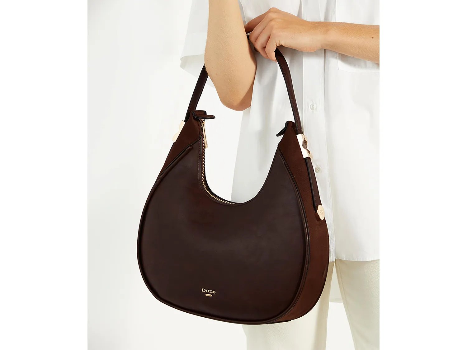 Добавьте элегантности любому образу с сумкой Dedicated от Dune London. Эта классическая сумка выполнена в стиле хобо и дополнена двумя декоративными пряжками. Застежка-молния надежно защитит ваши вещи.