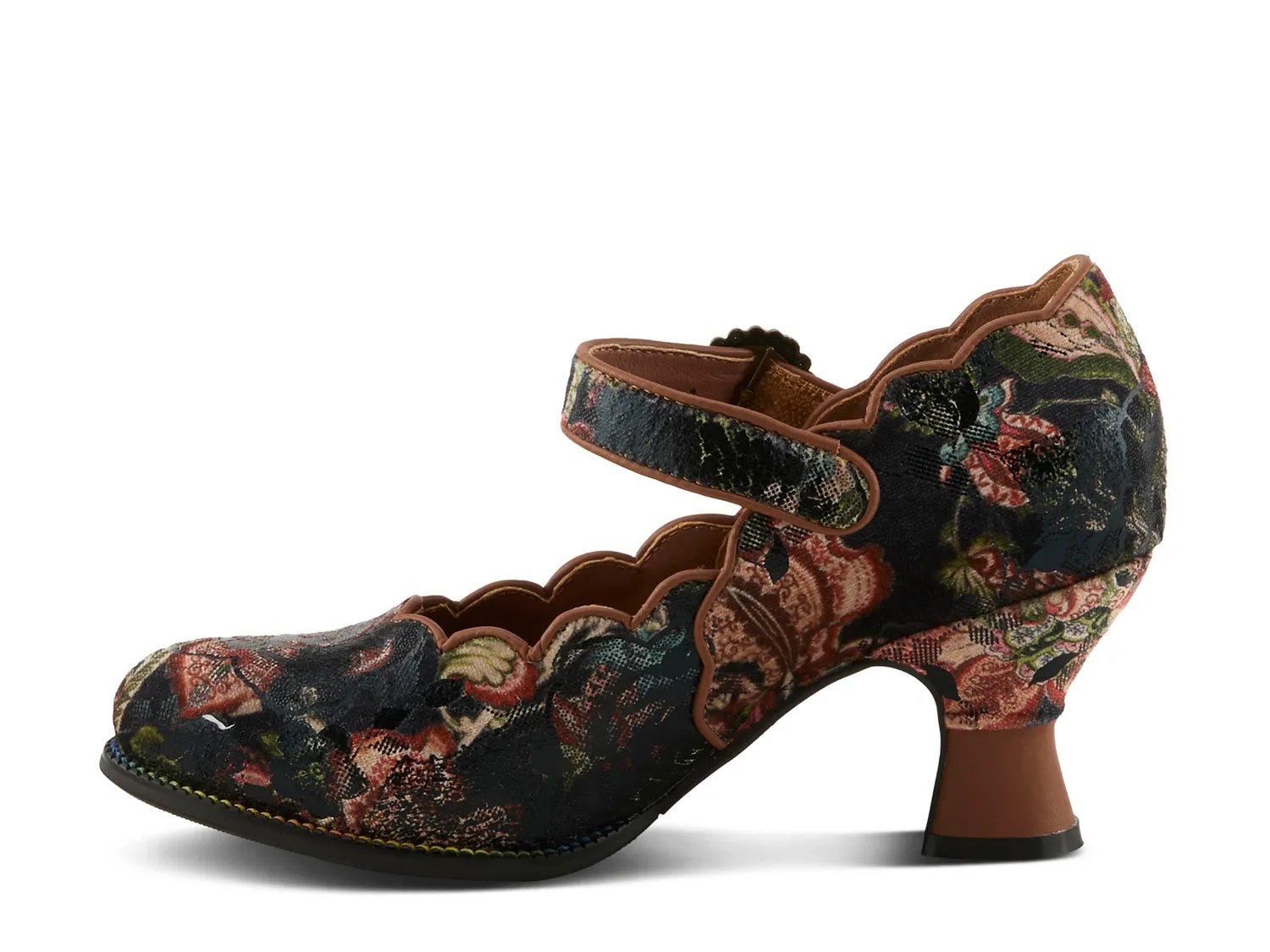 В этих туфлях L'Artiste Adodora Prit воплощено непреходящее очарование в смелой интерпретации. Верх из роскошного бархата и кожи, сочетающий в себе фактуры, тональные контрасты и фестончатые края в стиле барокко, подчеркивает их художественный шарм. Изящная пряжка в античном стиле сочетается со скрытым ремешком на липучке, создавая гармоничное сочетание старинных деталей и современной непринужденности. Изящно вырезанный каблук добавляет нужную высоту.