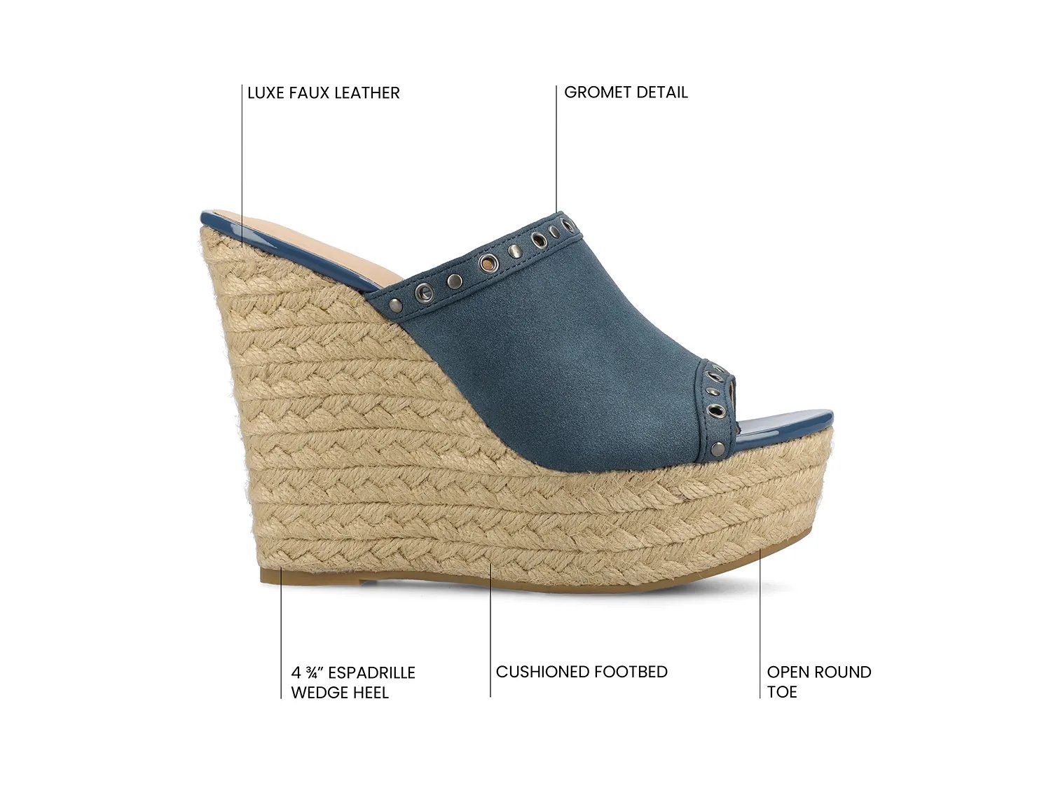 Усовершенствованная версия летнего базового предмета гардероба, босоножки на танкетке Yari, станет стильным дополнением к вашей коллекции. Эта модель от Journee отличается плетеным эспадрильем, высоким каблуком и эффектными люверсами по краю.