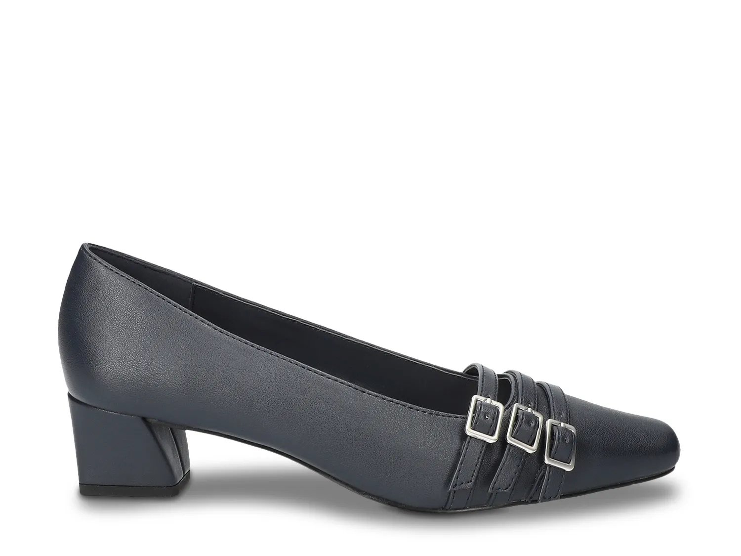 Украсьте свой образ туфлями-лодочками Enya от Easy Street. Тройные ремешки с пряжками на квадратном носке придают этим туфлям-слипонам изысканный вид, а низкий блочный каблук с перетяжкой подчеркивает стильный вид. Мягкая стелька от пятки до носка обеспечивает комфорт. Шагайте уверенно и естественно благодаря поддержке резиновой подошвы Easy Flex.