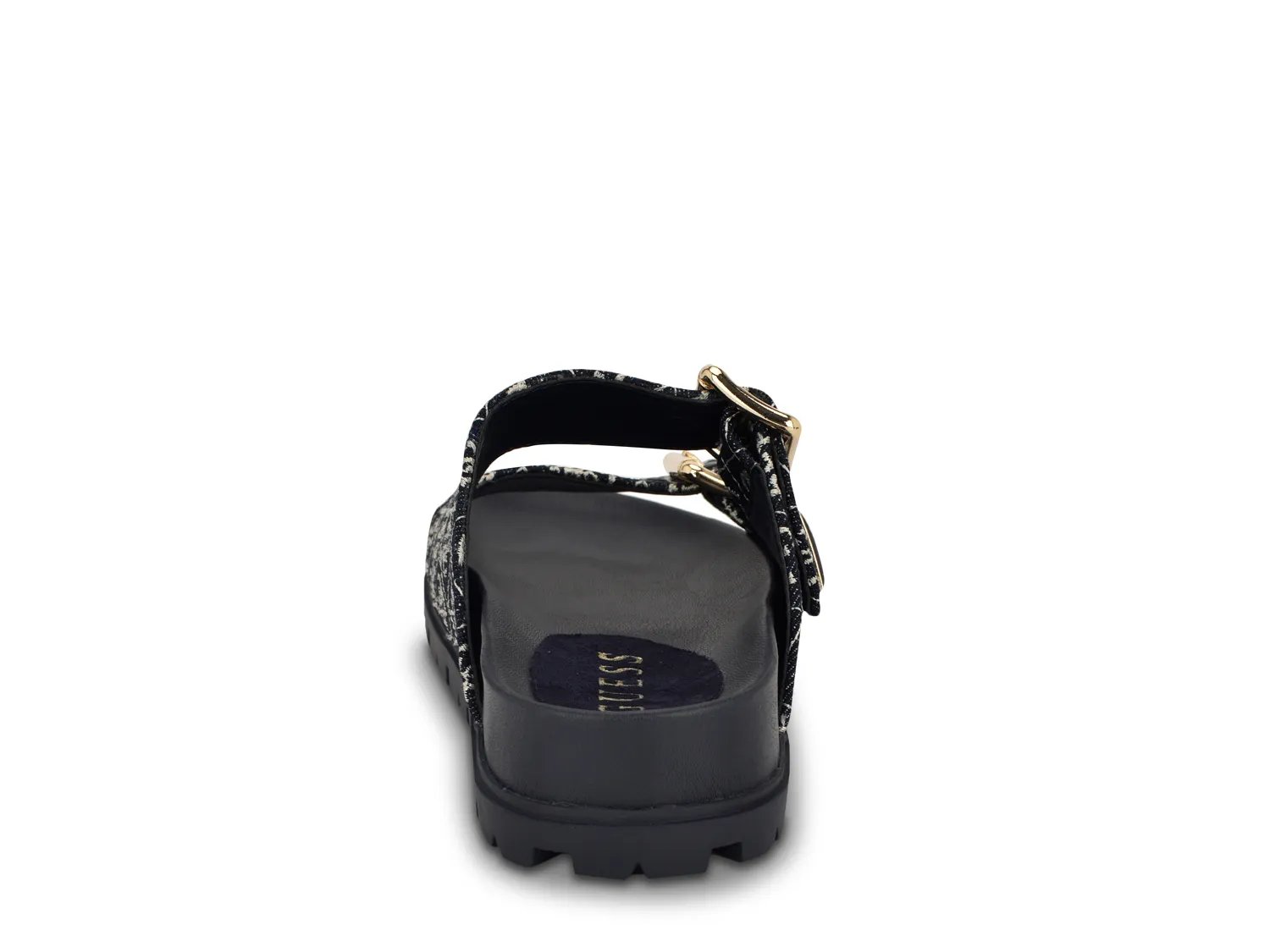 Дополните свой гардероб для теплой погоды сандалиями Fasten от Guess. Эти замшевые туфли с крупными ремешками с пряжками привлекают внимание, а формованная стелька обеспечивает поддержку стопы.