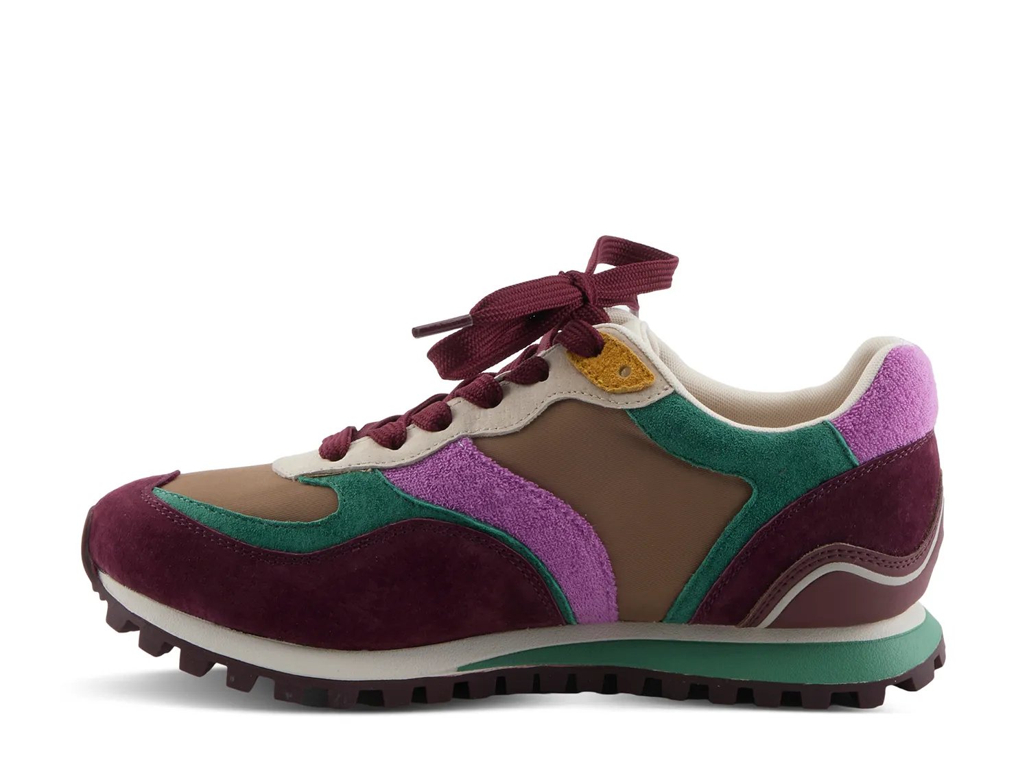 Кроссовки Patrizia Fiodh сочетают в себе винтажный стиль и современную динамику. В этих кроссовках смело сочетаются вставки из искусственной замши и текстиля, создающие многослойную текстуру и динамичный контраст. Модная цветовая гамма добавляет визуальной выразительности. Текстурированная рифленая подошва обеспечивает сцепление и прочность как для городских прогулок, так и для отдыха.