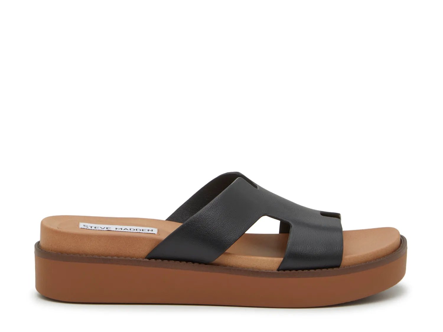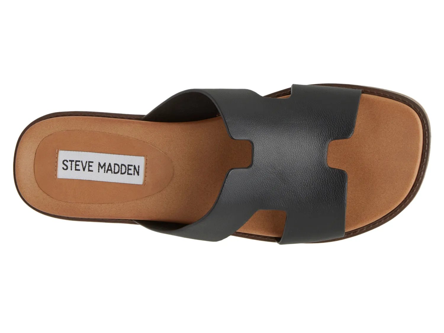 Обновите свою любимую летнюю обувь сандалиями Riches от Steve Madden! Простой силуэт шлепанцев дополнен высококачественной кожаной конструкцией, стильным верхом в виде клетки и модной платформой.