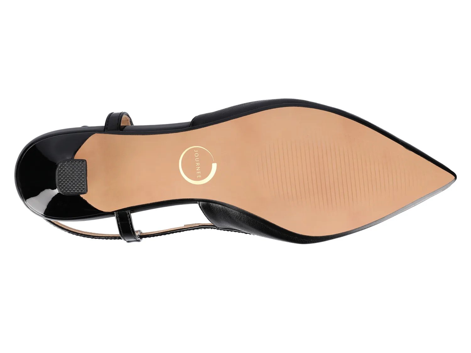 Добавьте нотку строгости в свой изысканный образ с туфлями Padma от Journee. Эти элегантные туфли с открытой пяткой имеют острый носок, модный каблук-рюмочку и акцент в виде двух пряжек. Сверху они украшены стильным вырезом.