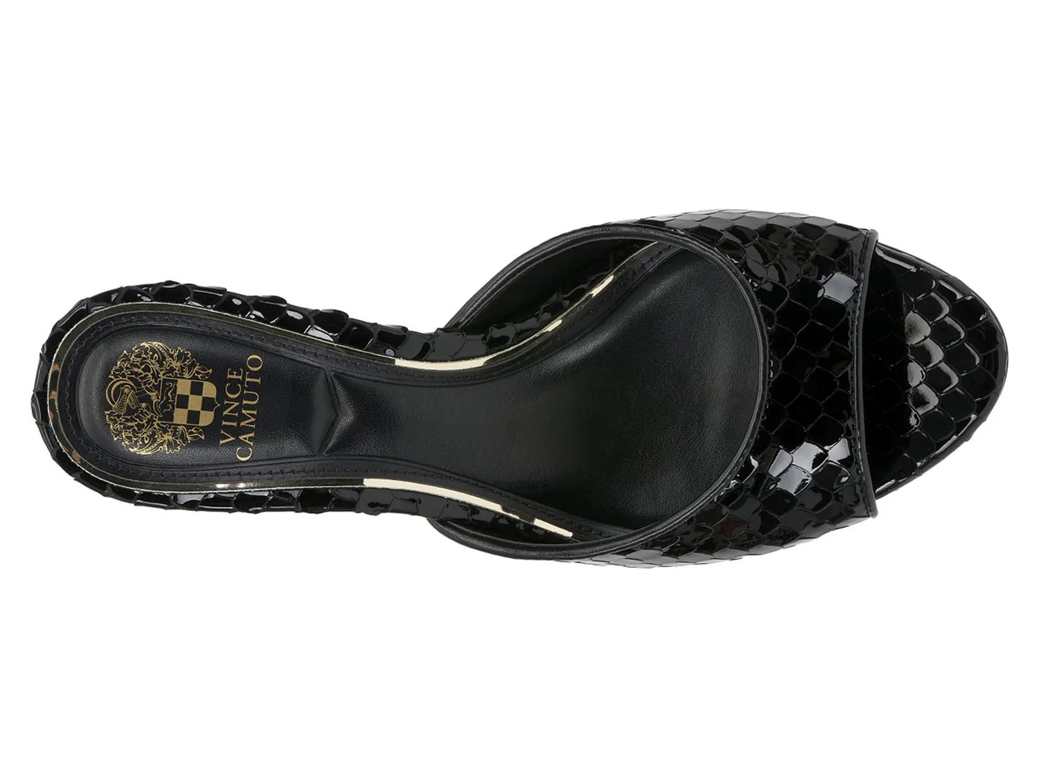 Покорите модников сандалиями Vince Camuto Prynna. Мюли-сандалии с плетеным узором создают летний, но в то же время изысканный образ. Лакированная отделка верха придает ему легкий блеск.
