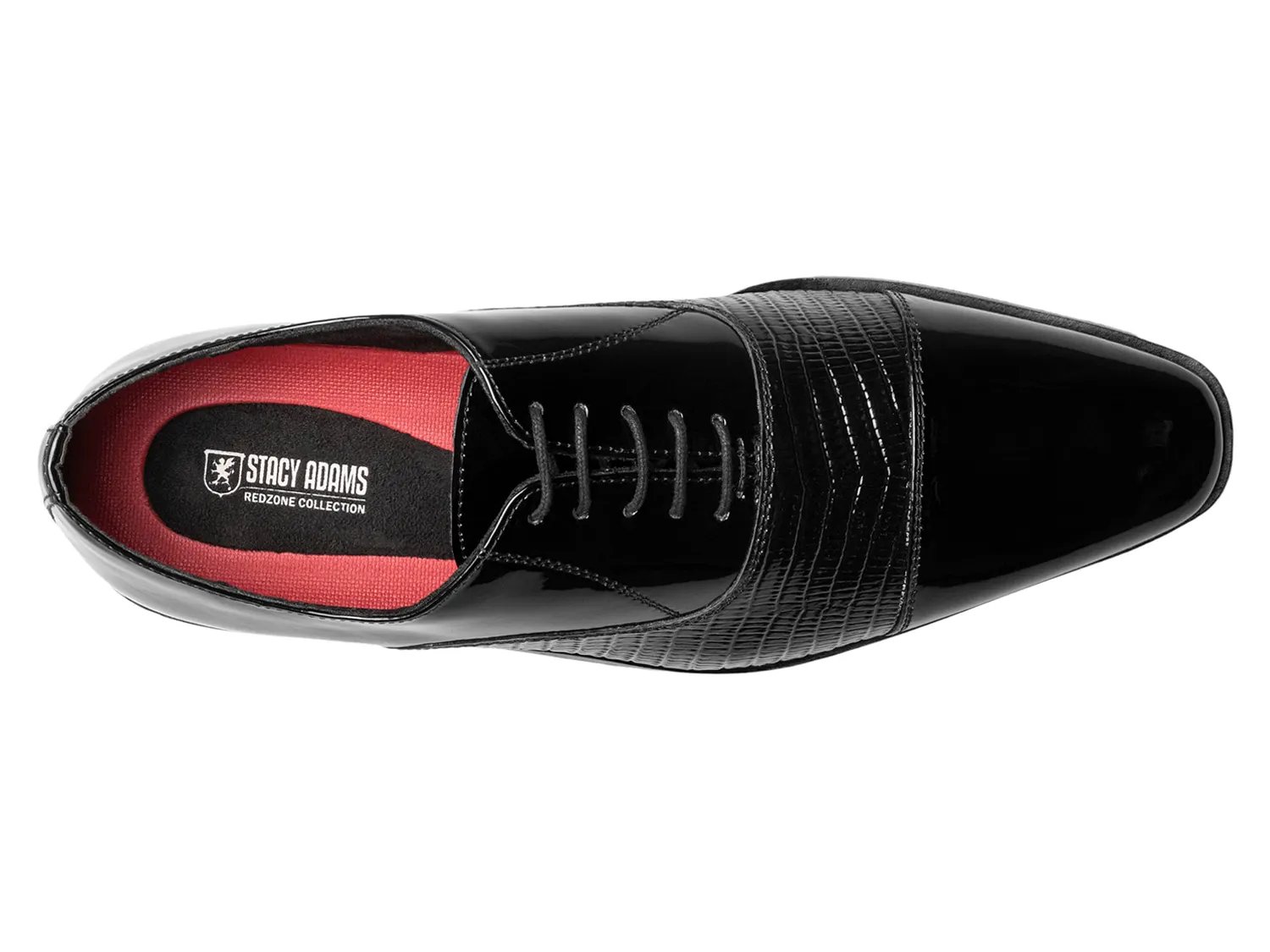 Добавьте нотку элегантности в свой деловой образ с помощью оксфордов Razzeto от Stacy Adams. Гладкая лакированная отделка и принт под ящерицу придают этой паре элегантный вид, а амортизация RedZone обеспечивает комфорт при ходьбе.