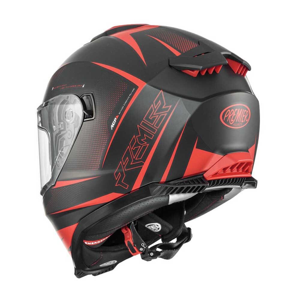 Безопасность является главным приоритетом для PREMIER HELMETS 23 Typhoon FR92BM, поскольку Он оснащен усиленным корпусом из стекловолокна, обеспечивающим исключительную ударопрочность. Шлем также соответствует строгим стандартам безопасности, установленным различными регулирующими органами, что гарантирует гонщикам его надежность и защитные возможности.