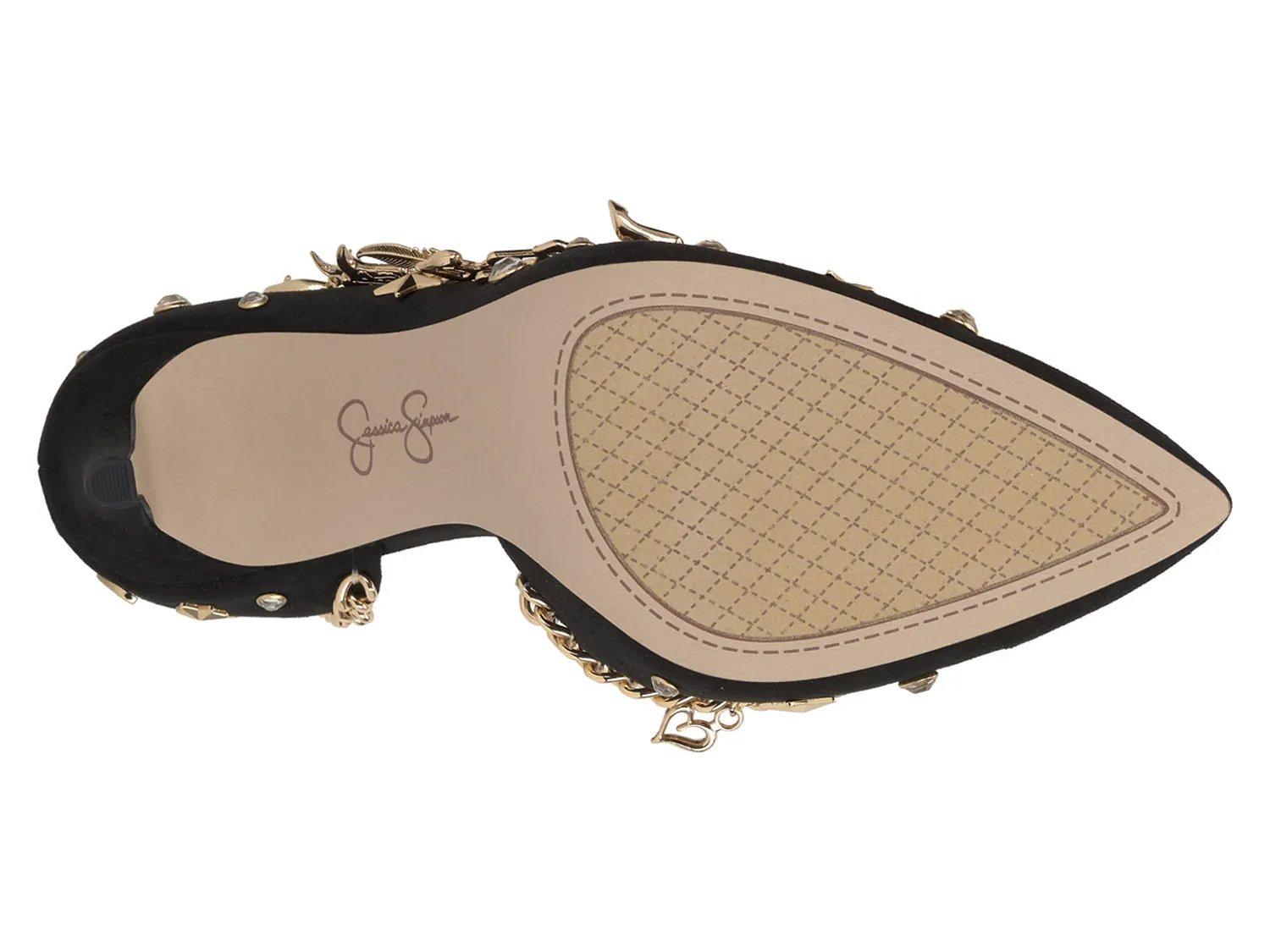 Добавьте блеска в каждый шаг с туфлями-лодочками Jessica Simpson Palias. Цепочка с подвесками в виде звезды, сердца, банта, луны и обуви на союзке придает этим туфлям с острым носком, выполненным в частичном стиле d'Orsay, завораживающий вид.