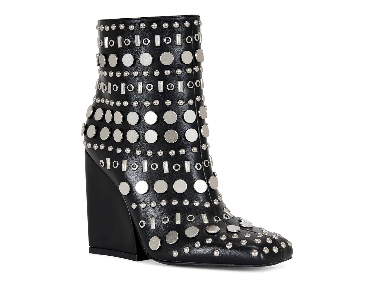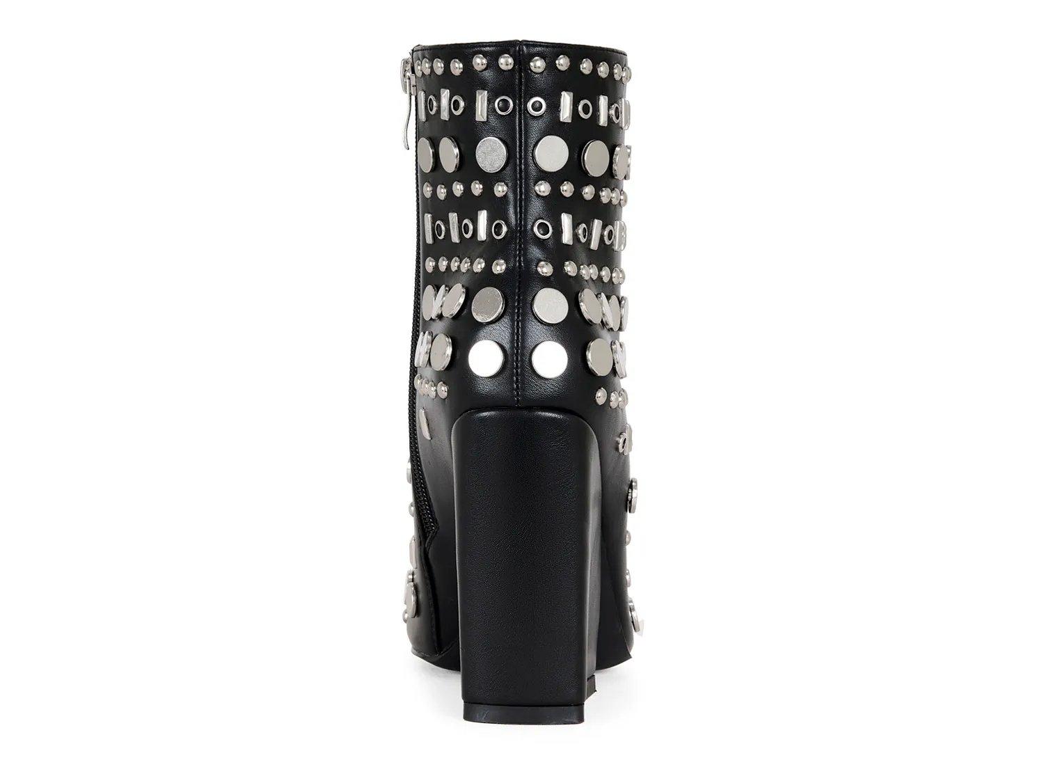 Легко освежите свой образ ботильонами Fletcher от Azalea Wang. Сплошная отделка заклепками и эффектный блочный каблук создают настроение и идеально подходят для вечернего образа.