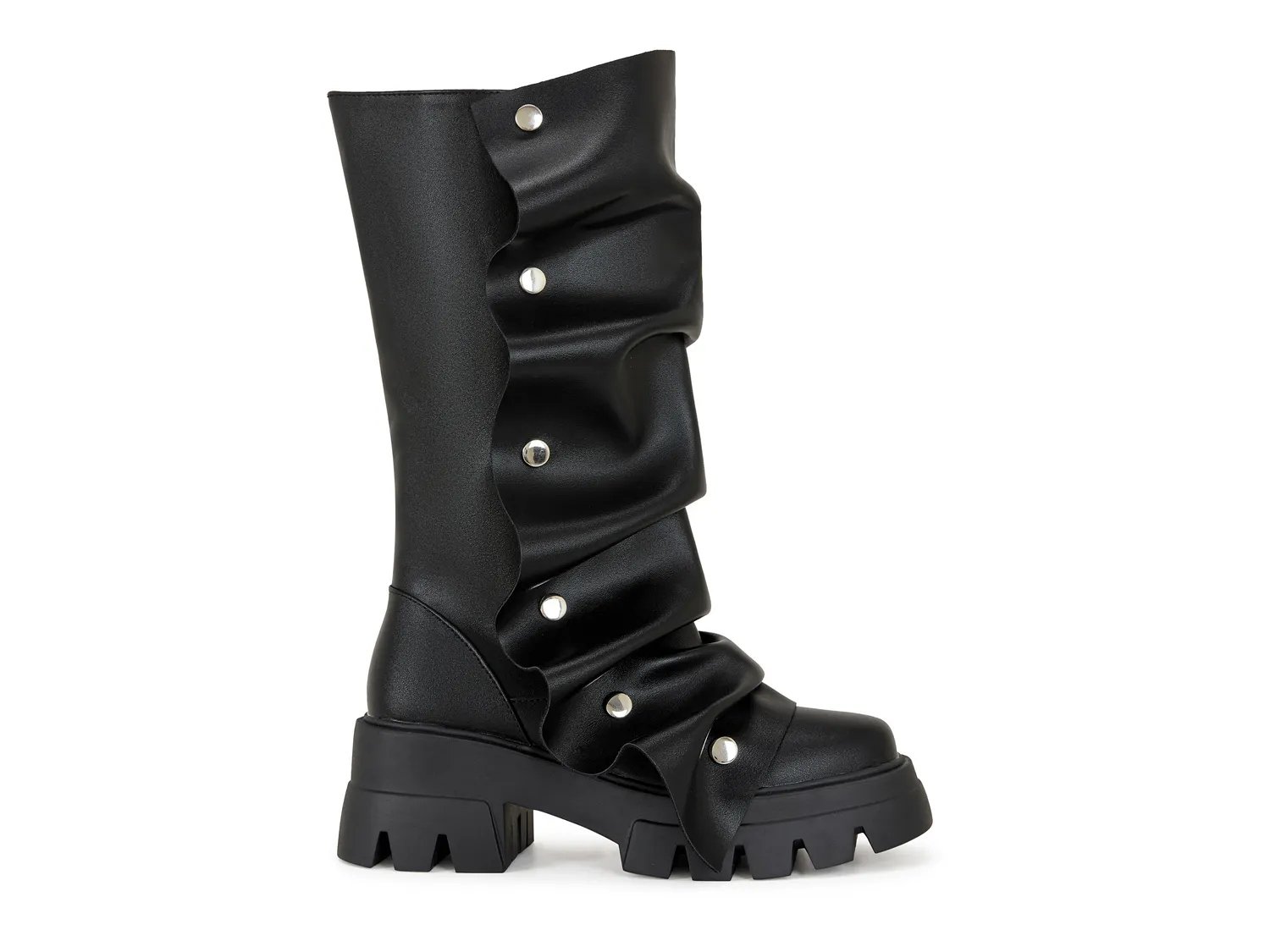 Выйдите на стильный уровень в ботинках Sybel от Azalea Wang. Эти черные ботинки с элегантным верхом со сборками, застежкой на кнопку и удобной мягкой стелькой дополнены модной платформой, которая визуально увеличивает рост.