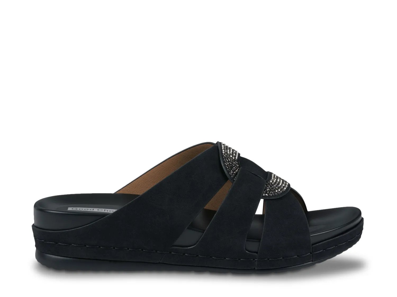 В этих стильных босоножках Betsy от Good Choice гламур сочетается с непринужденностью. Широкие перекрещивающиеся ремешки сверкают стразами, придавая этим босоножкам слипоны смелый, но изысканный вид. Мягкая стелька и прочная подошва обеспечат вам комфорт как в утренних походах, так и в вечерних нарядах.