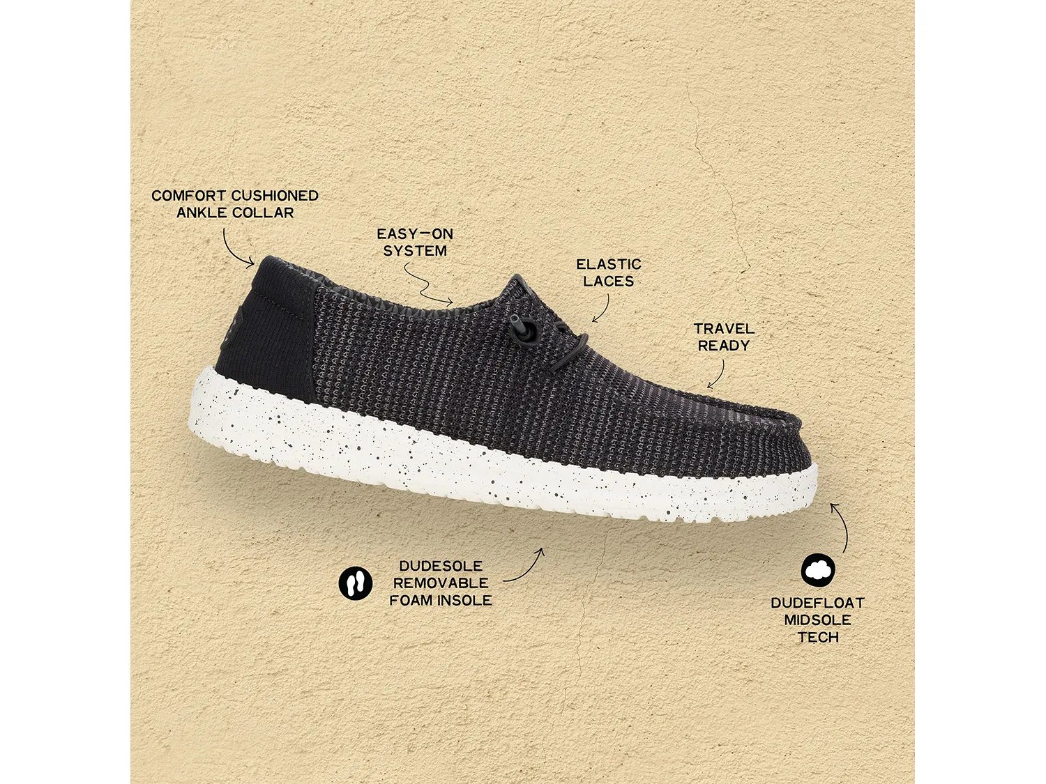 Стильные и удобные кроссовки Hey Dude Wendy Stretch Sox - незаменимая вещь в вашем дорожном гардеробе. Верх из синтетической ткани и хлопковая подкладка обеспечивают долговечность и максимальный комфорт. Стелька из пеноматериала обеспечивает непревзойденный комфорт.