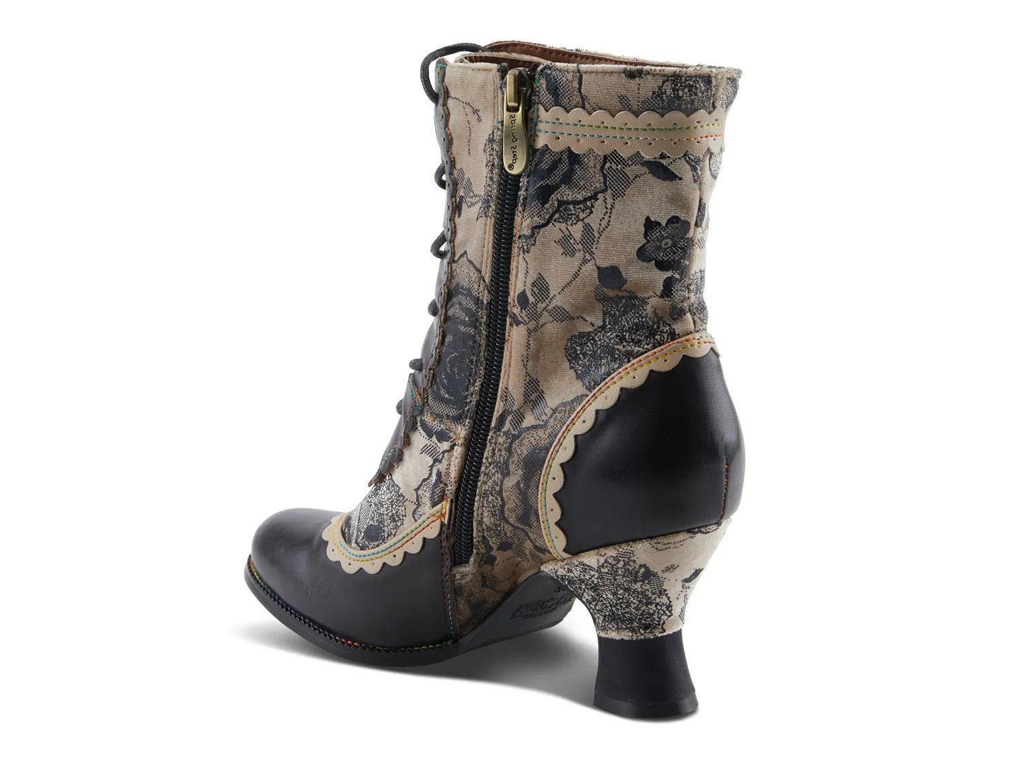 Ощутите смелое мастерство с этими ботильонами L'Artiste Bewitch Prit. Эти ботильоны в стиле барокко, выполненные из роскошного сочетания бархата и кожи, отличаются ярким цветочным принтом, фестончатой отделкой и изысканными текстурами, которые вместе создают поразительно уникальный образ. Скульптурный каблук средней высоты добавляет винтажного очарования, обеспечивая устойчивость и комфорт в течение всего дня. Шнуровка спереди позволяет индивидуально подогнать ногу, а внутренняя молния обеспечивает легкость и удобство при ношении.