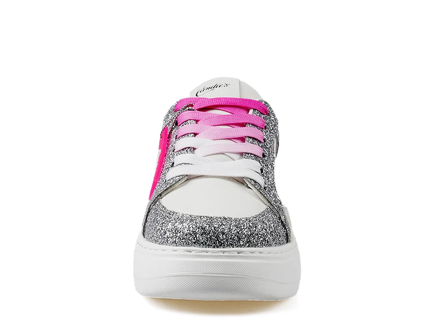 Подчеркните повседневный образ с помощью ярких кроссовок Gummie от Candie's. Это пара на платформе с блестящими деталями на кожаном верхе, которые мерцают при каждом шаге.