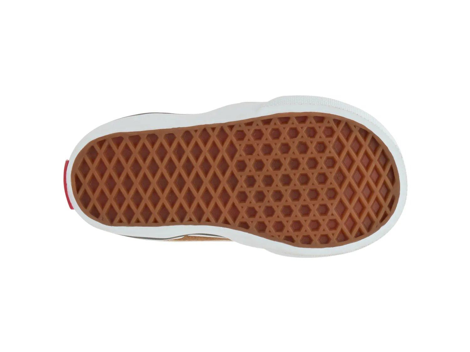 Придайте своему малышу классический спортивный стиль с кроссовками Brooklyn от Vans. Эта блестящая пара оснащена двумя липучками для удобства ношения и вулканизированной подошвой для создания классического образа.