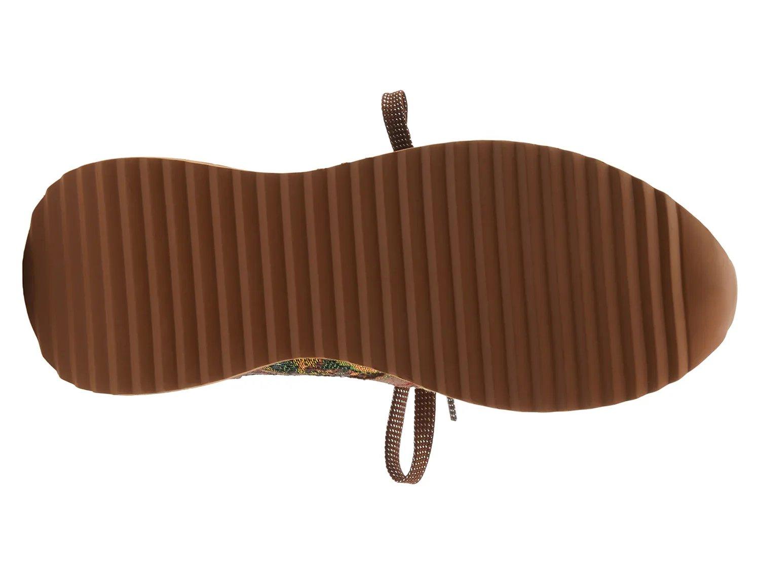 Эти искусно смелые кроссовки L'Artiste Invidia приковывают взгляды с каждым шагом. Верх из металлизированной замши и плетеного хлопкового гобелена сочетает в себе богатую текстуру и модный дизайн. Фирменная радужная строчка добавляет нотку ручной работы, а тропические узоры на мыске и подошве создают шикарный образ. Эта эффектная модель, созданная для комфорта в течение всего дня, движется так же легко, как и выглядит.