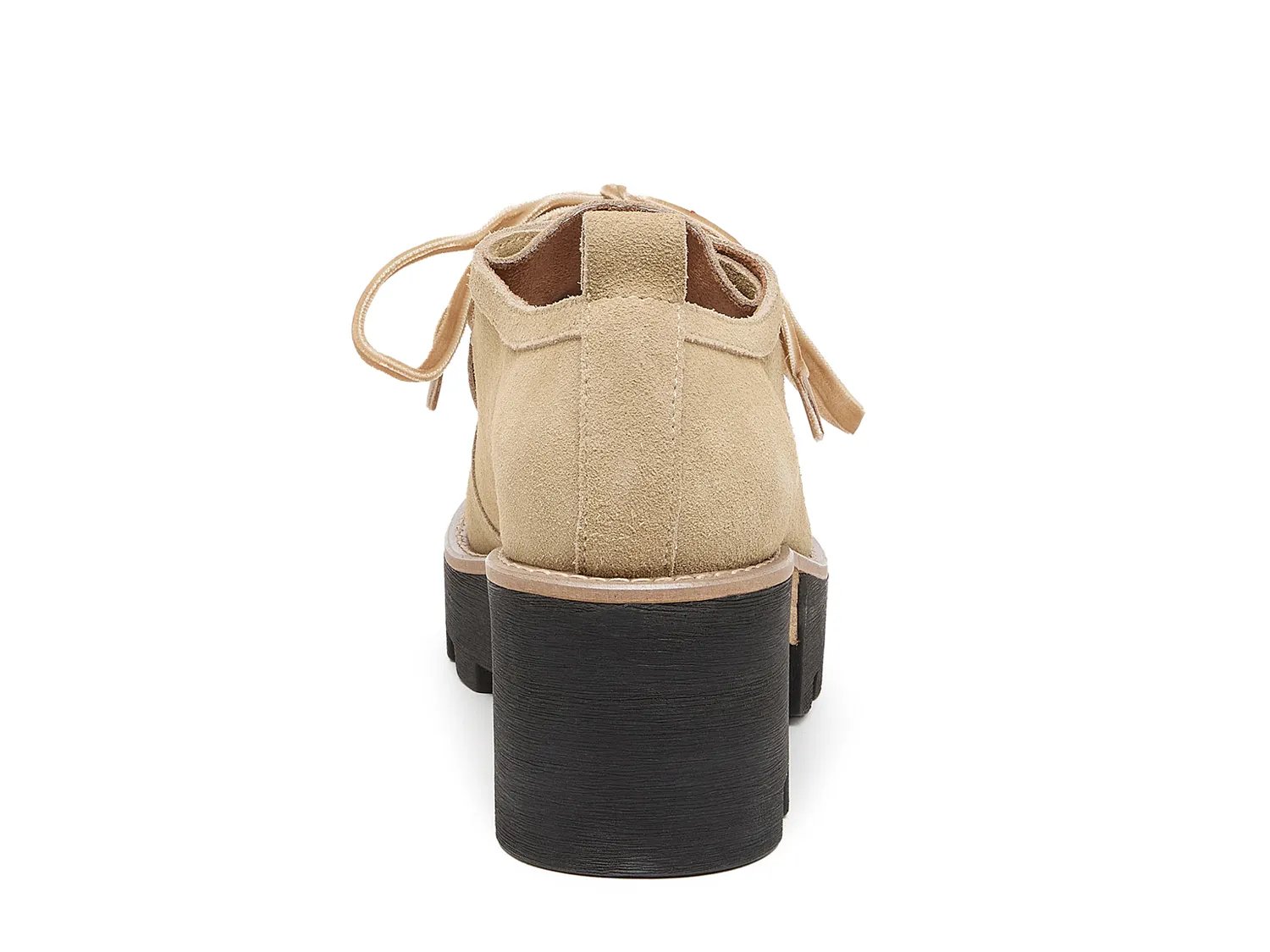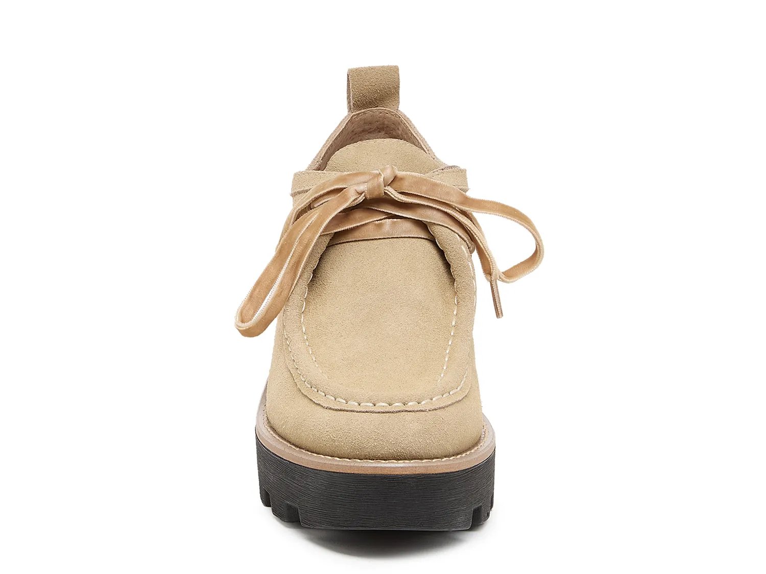 В лоферах на платформе Olga от Kelsi Dagger Brooklyn вы обязательно привлечете всеобщее внимание. Эта замшевая пара с бархатными шнурками, массивным блочным каблуком и классическим мокко-носком выведет любой образ на новый уровень.