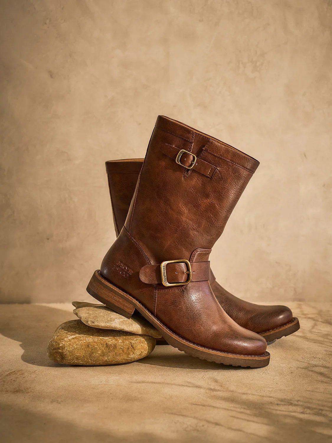 Ботинки Chesnee от Frye & Co. достаточно универсальны и подойдут для любого образа в прохладную погоду. Эта кожаная модель украшена стильными пряжками и тонким блочным каблуком, визуально увеличивающим рост.
