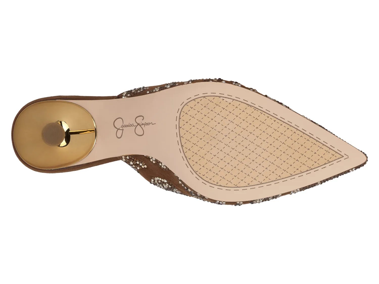 Добавьте блеска и гламура в свой образ с мюлями Xia от Джессики Симпсон. Острый носок и блестящая отделка на союзке украшают эти туфли-слипоны с тонким золотистым каблуком, придавая им мерцающий вид.